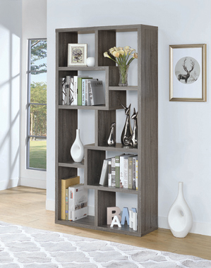 With eight convenient shelves, this bookcase is perfect for keeping your reading materials in one place. Sturdy and durable, it’s expertly crafted from MDF, particle board, and engineered veneer. Its striking silhouette is bold yet refined with geometric shapes of various sizes. It’s available in your choice of six stunning finishes to match your decor. Whether it’s placed in a home office, living room, or bedroom, this bookcase is an exquisite enhancement to any home.