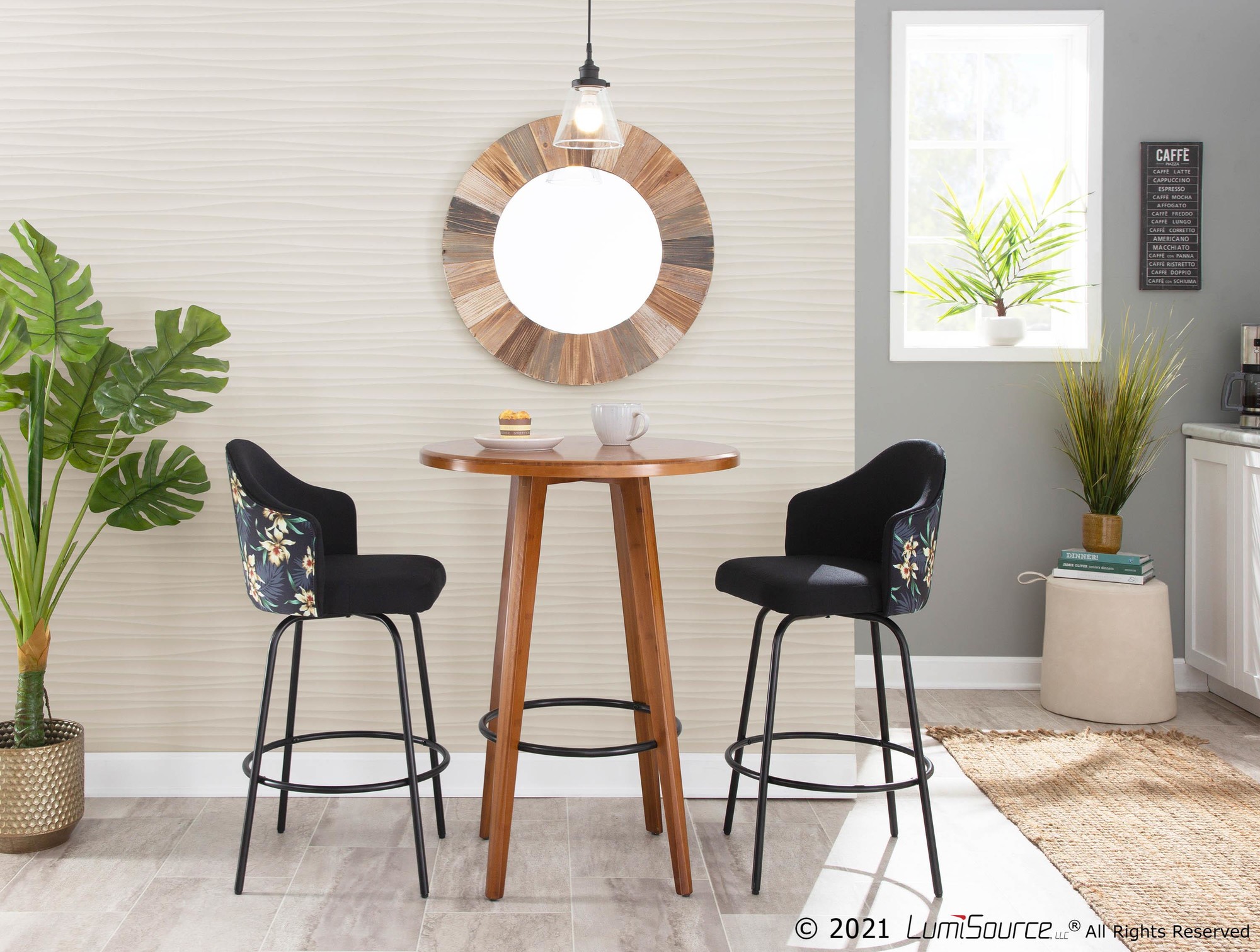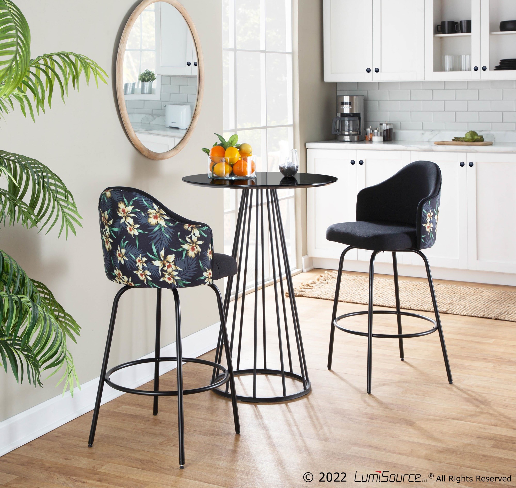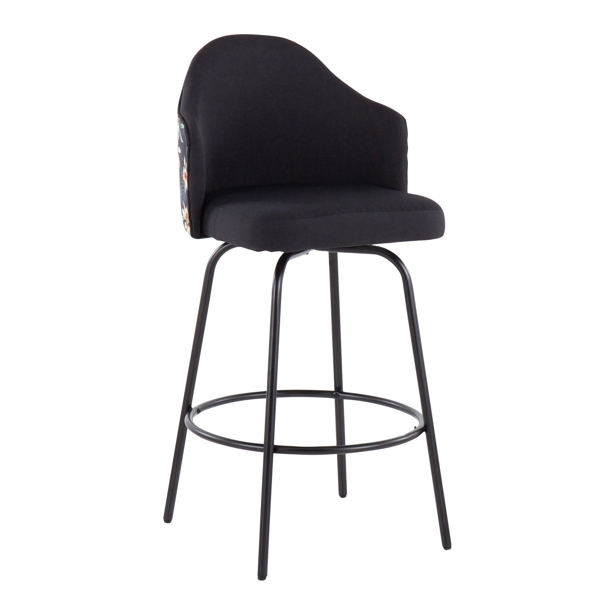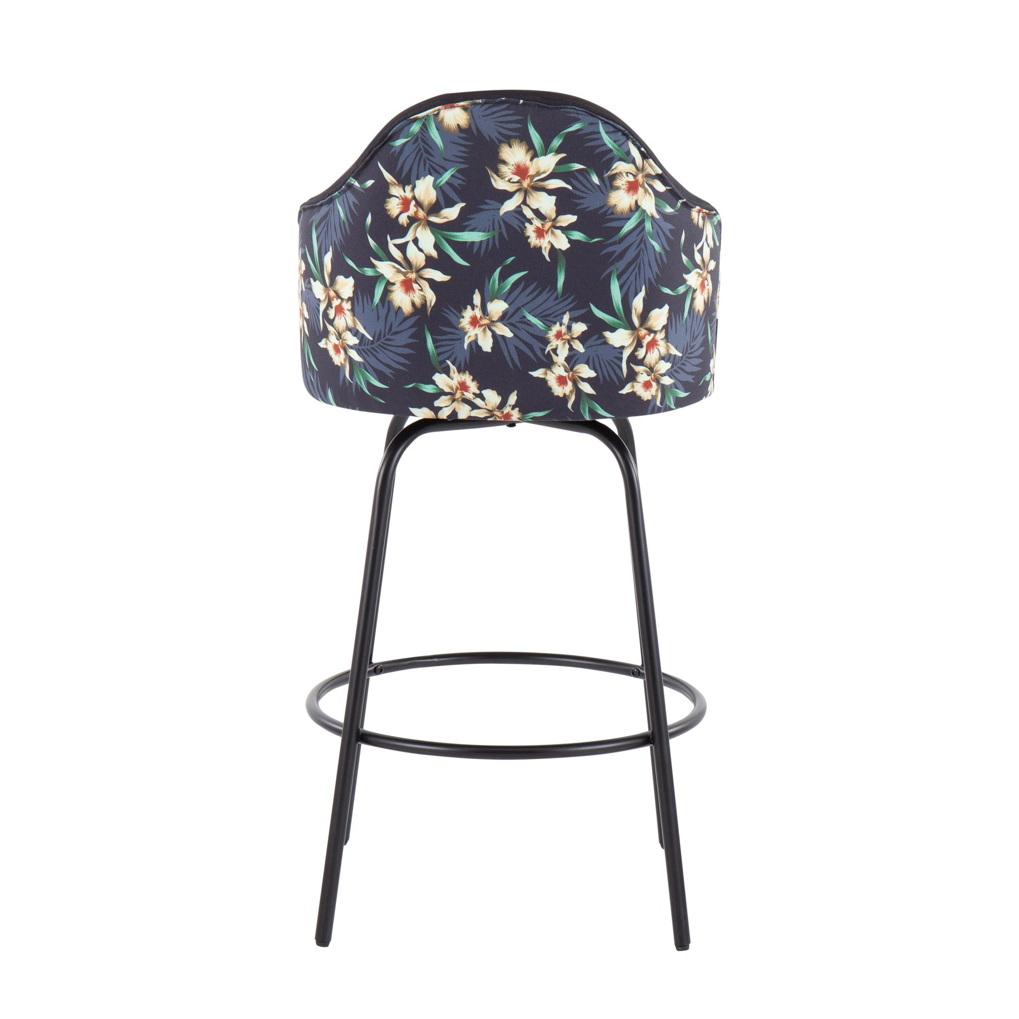 Ahoy Counter Stool – Black Metal, Black Fabric, Floral Print – Set of 2