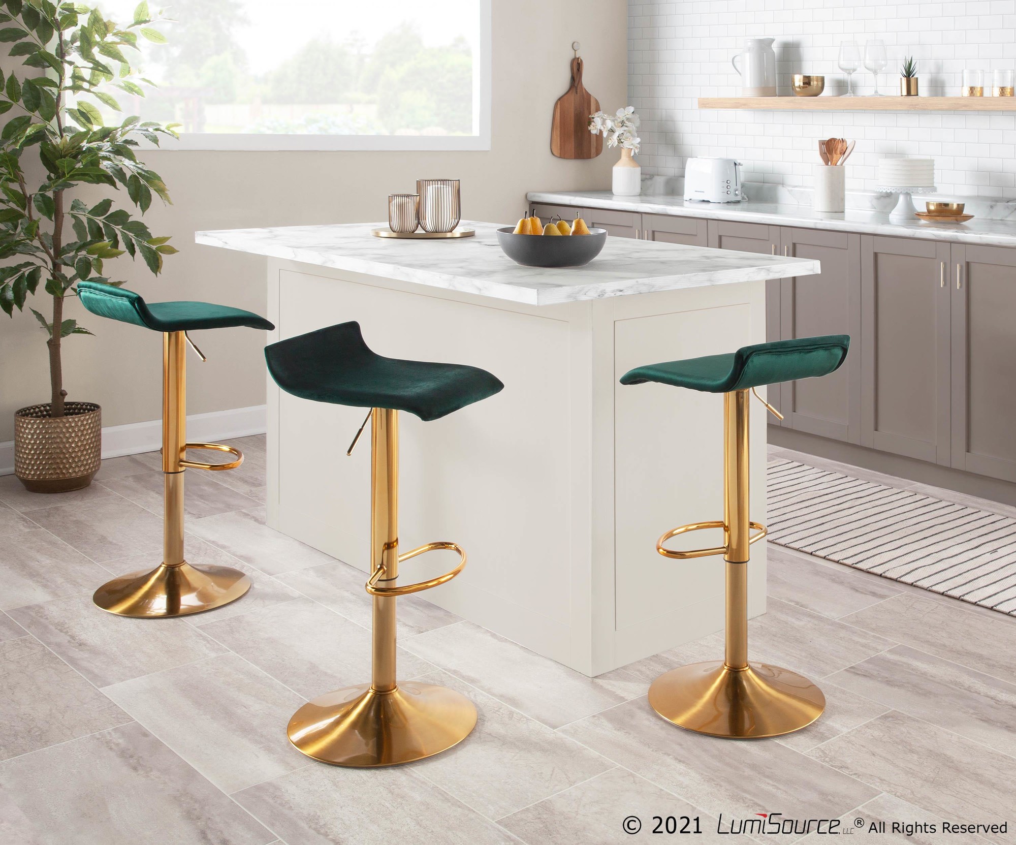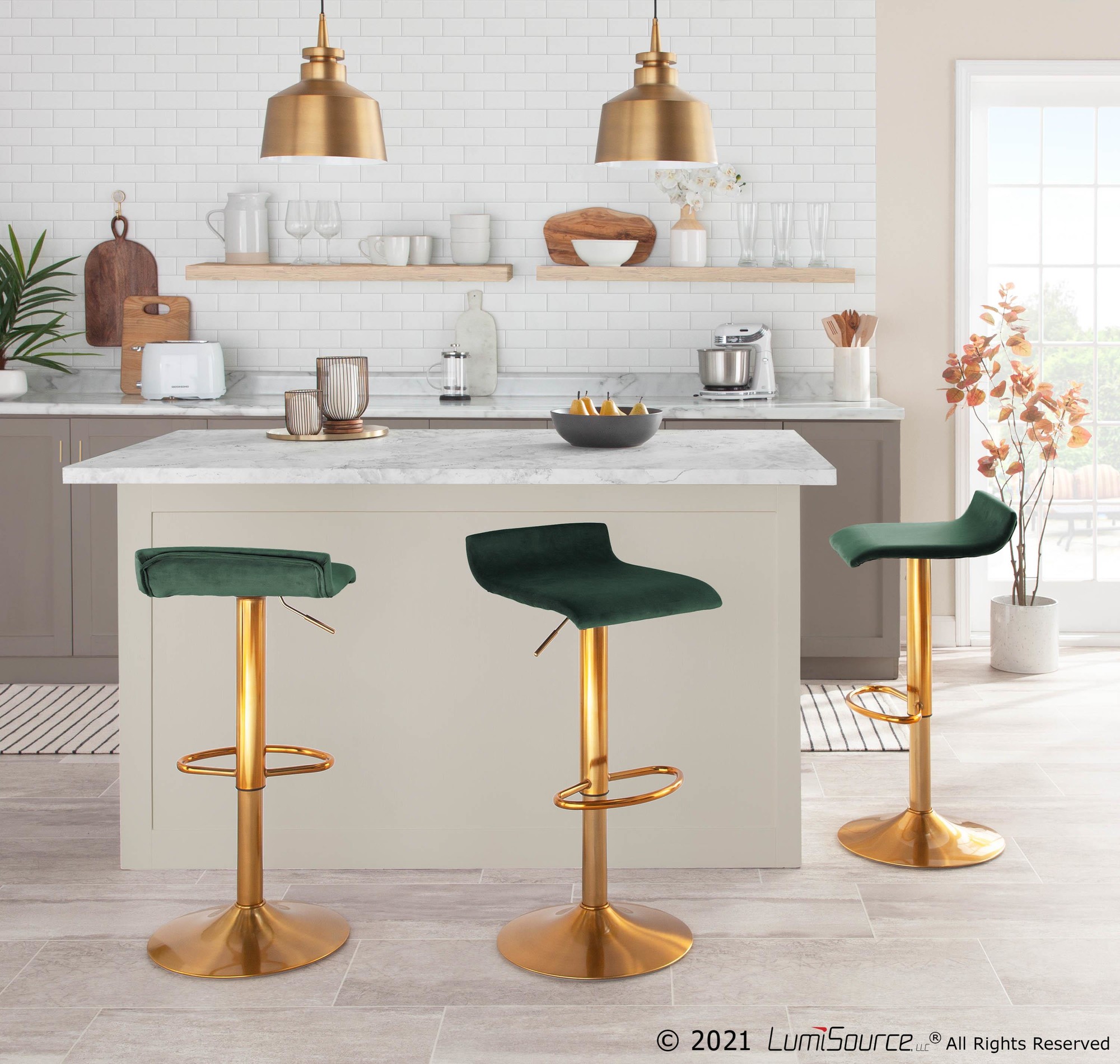 Home / Dining Room / Chairs, Stools, and Benches / Ale Barstool – Gold Steel, Green Velvet – Set of 2