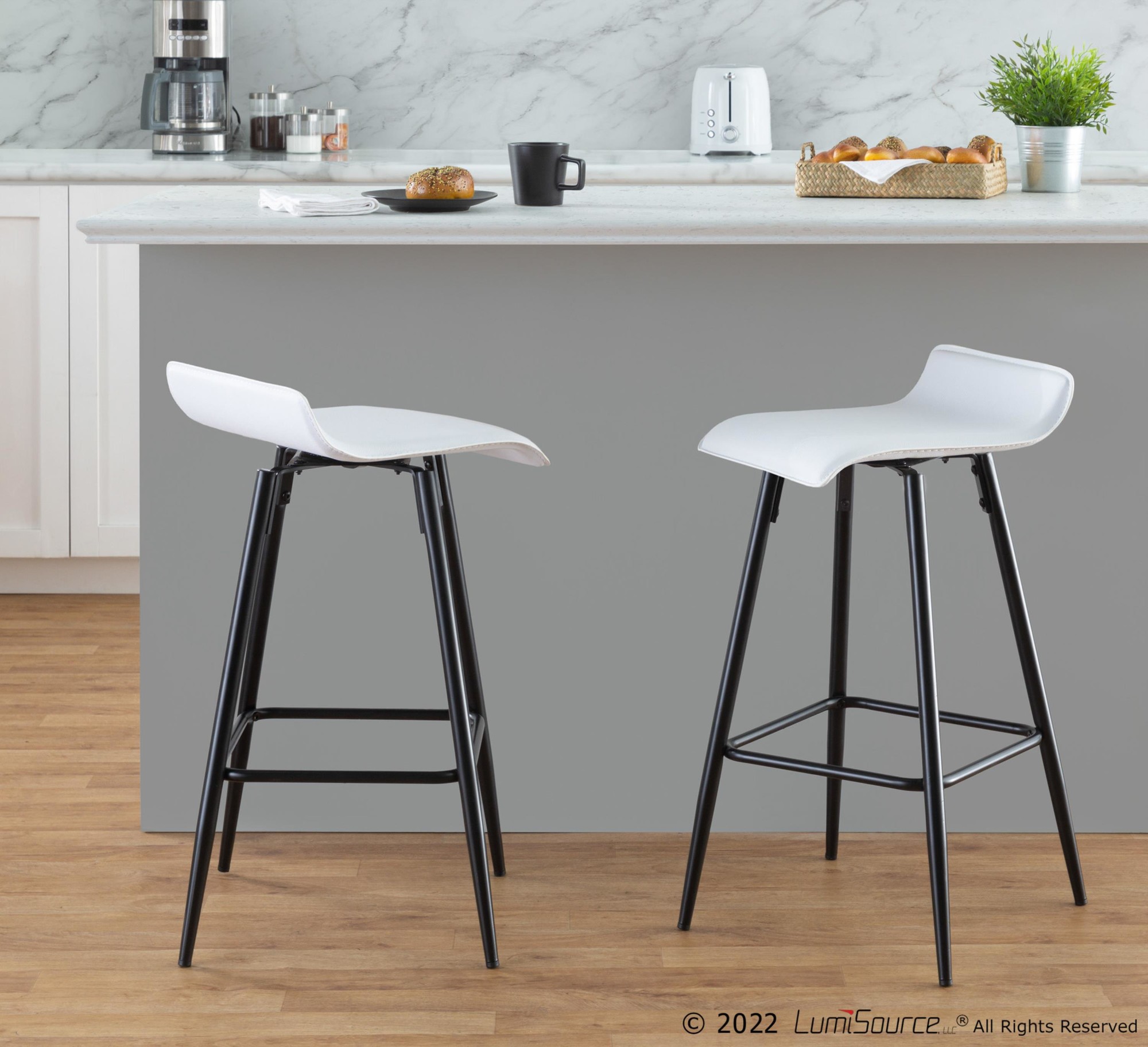 Ale Fixed-Height Bar Stool – Black Steel, White PU – Set of 2