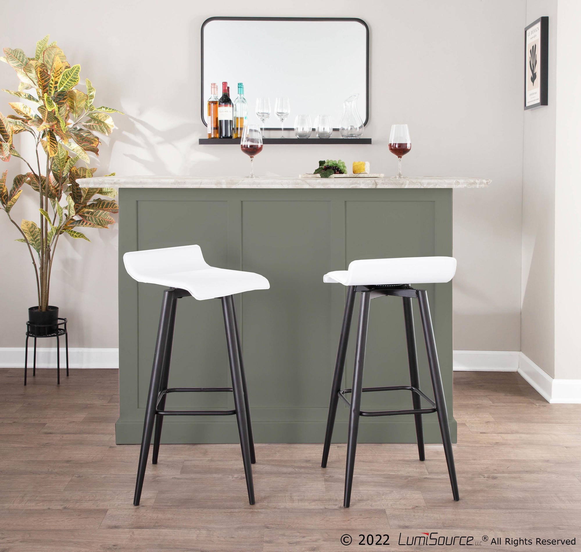Home / Dining Room / Chairs, Stools, and Benches / Ale Fixed-Height Bar Stool – Black Steel, White PVC – Set of 2