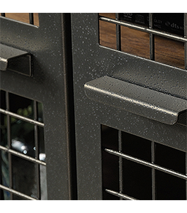 Metal doors and wire mesh in front.