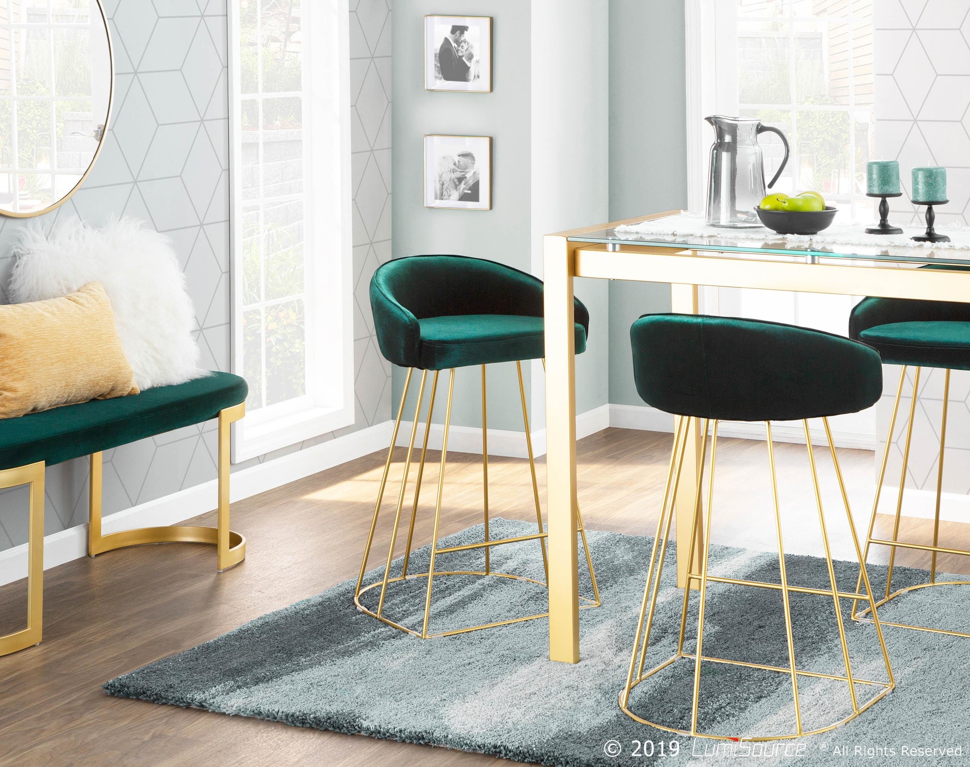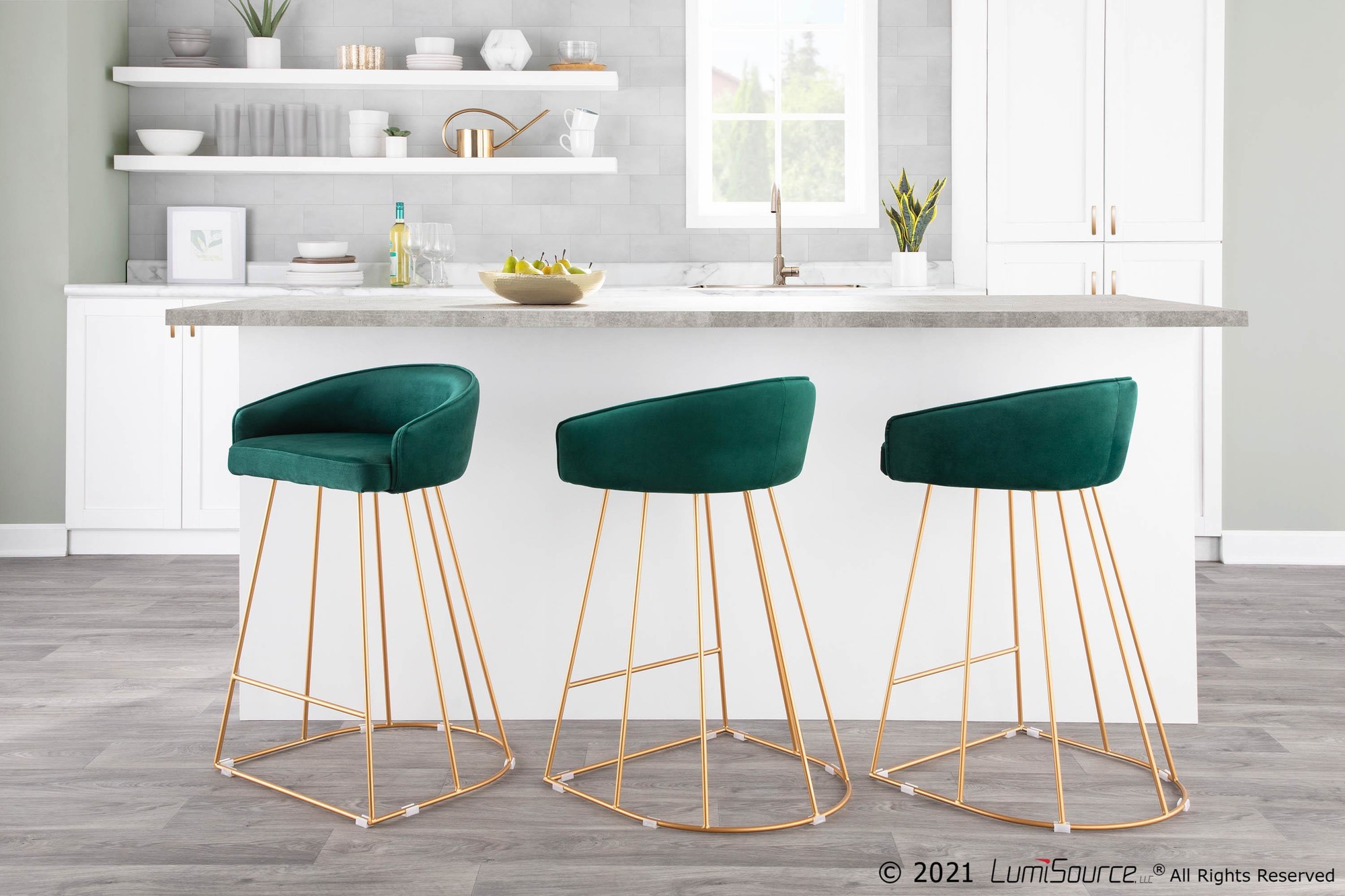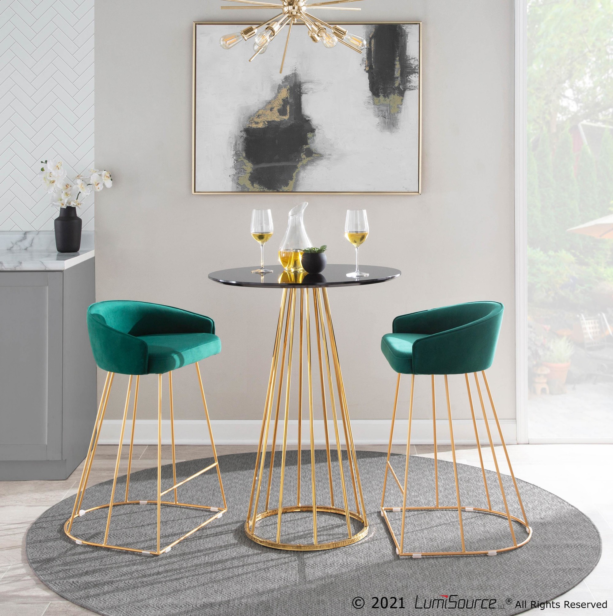 Canary Counter Stool – Gold Metal, Green Velvet – Set of 2
