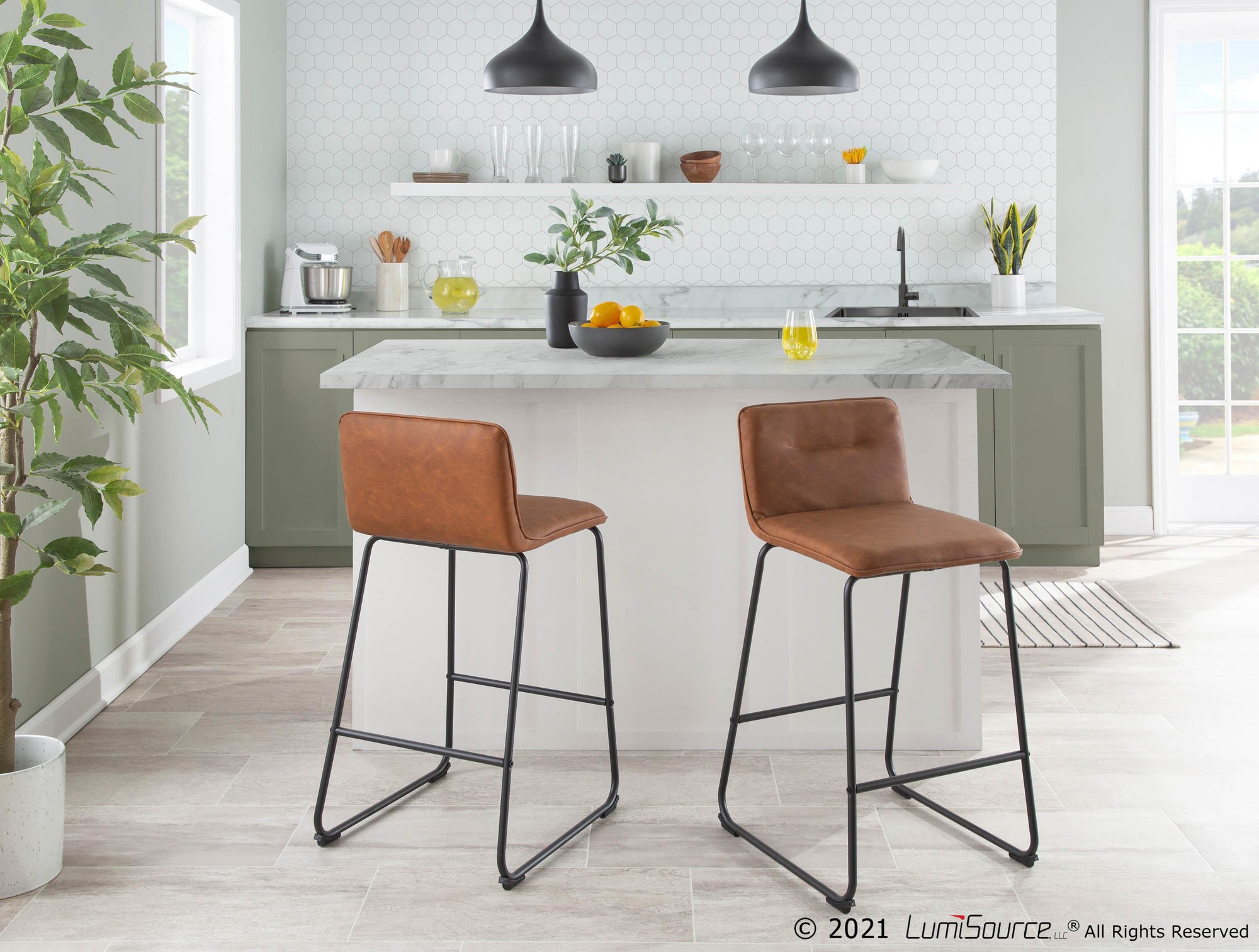 Home / Dining Room / Chairs, Stools, and Benches / Casper Fixed-Height Counter Stool – Black Metal, Camel PU – Set of 2