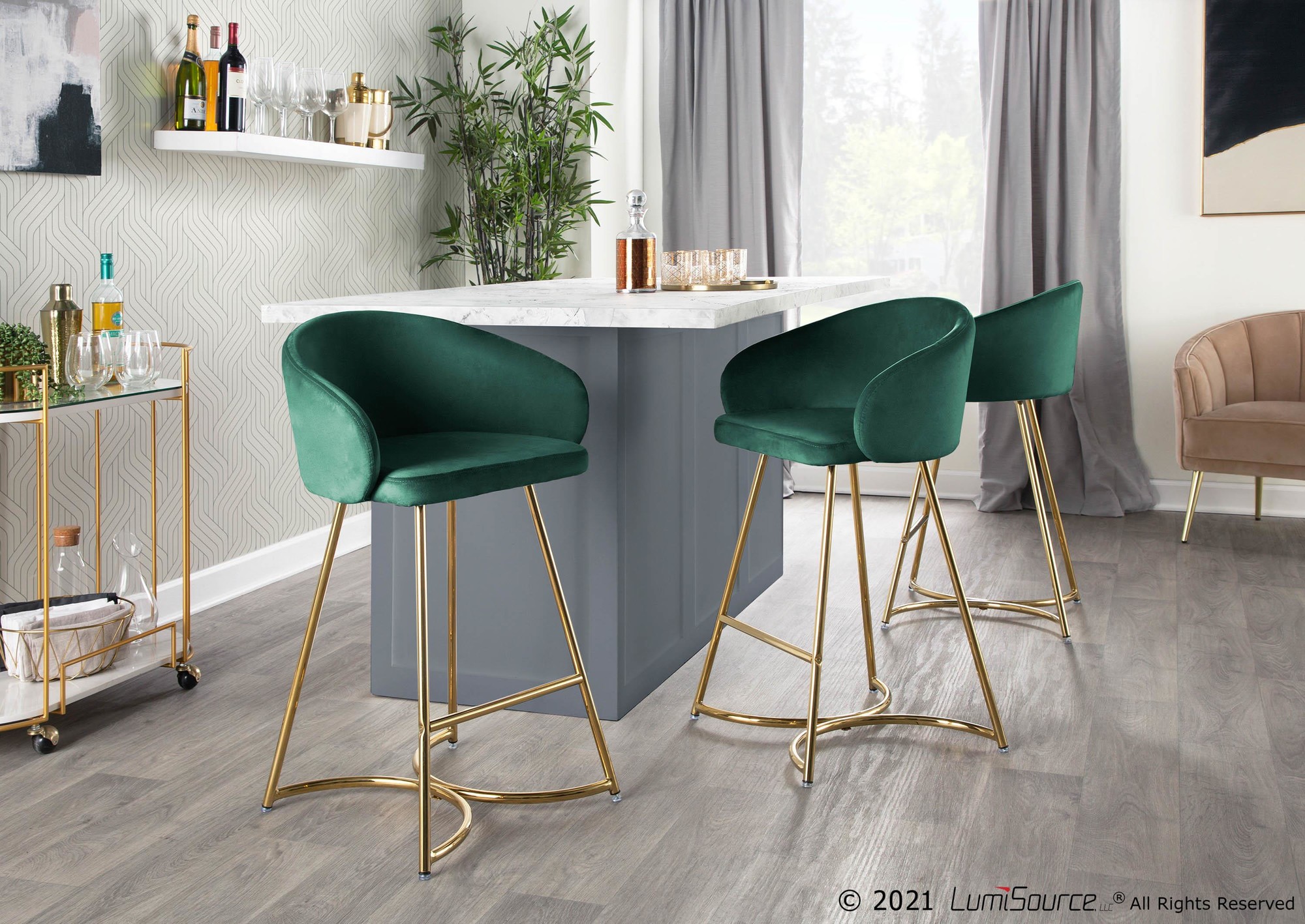 Cece Counter Stool – Gold Steel, Green Velvet – Set of 2