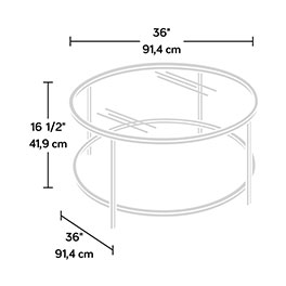 Create a great look with this round glass Coffee Table. Durable metal frame construction. Finished on all sides.