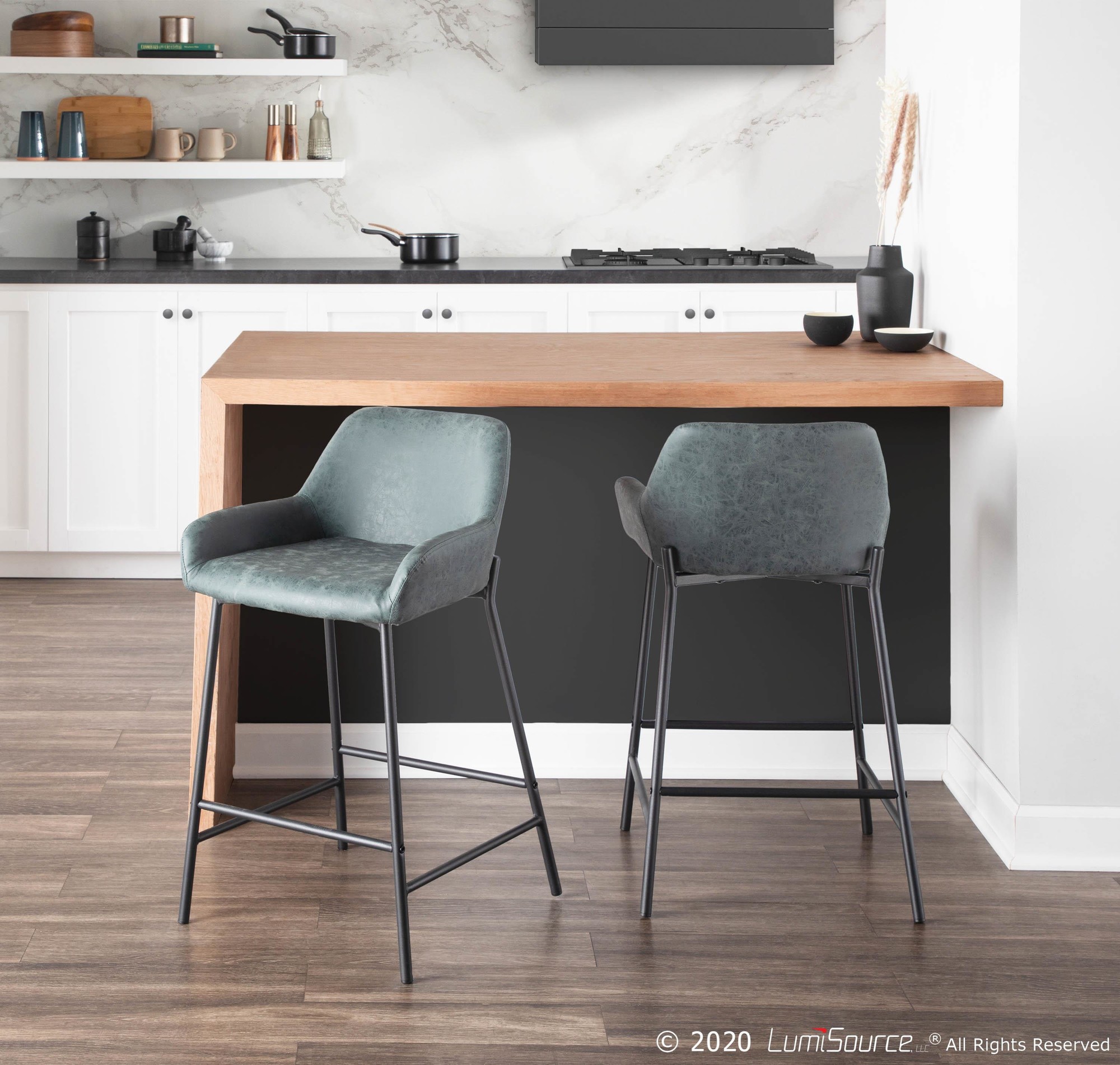Daniella Counter Stool – Black Metal, Green PU – Set of 2