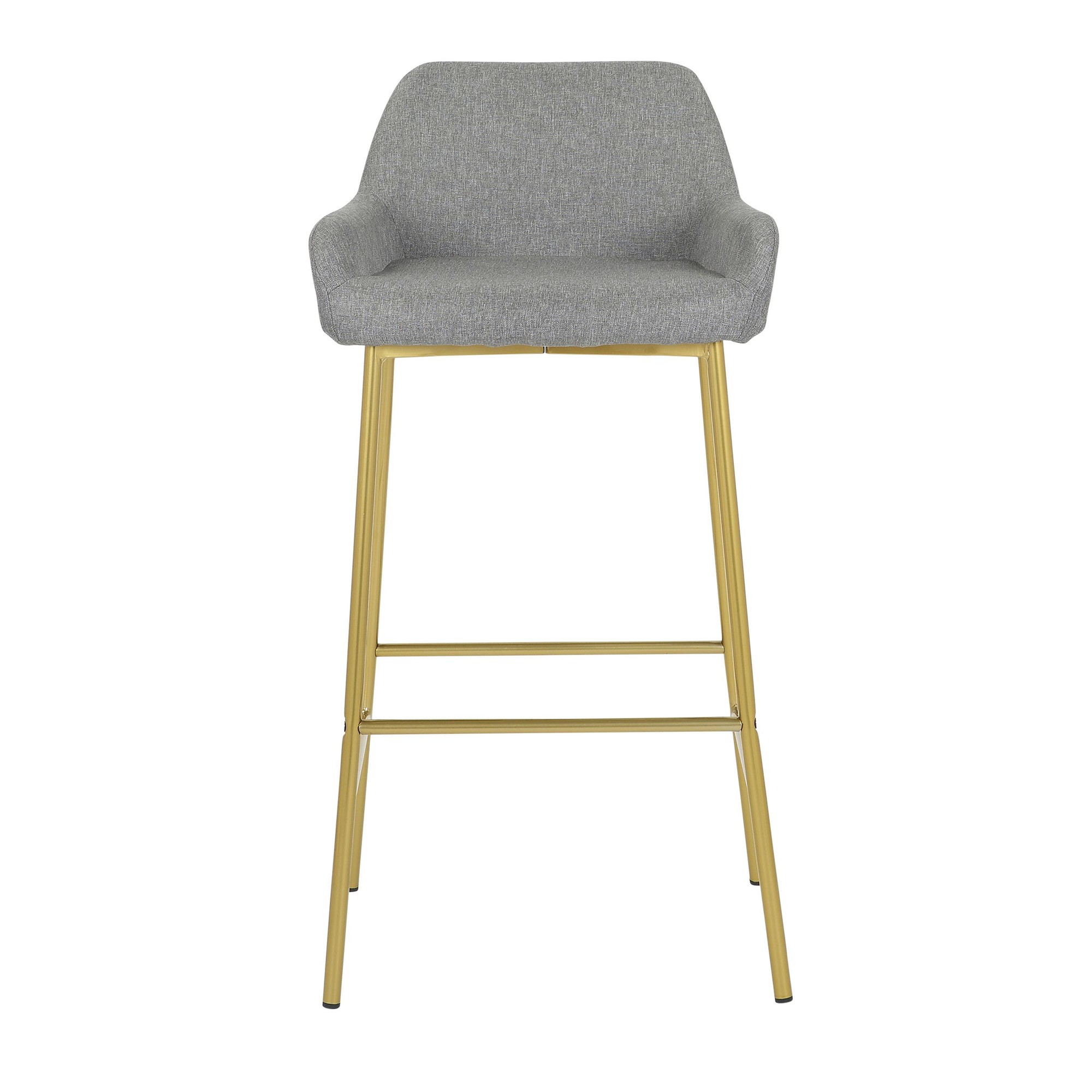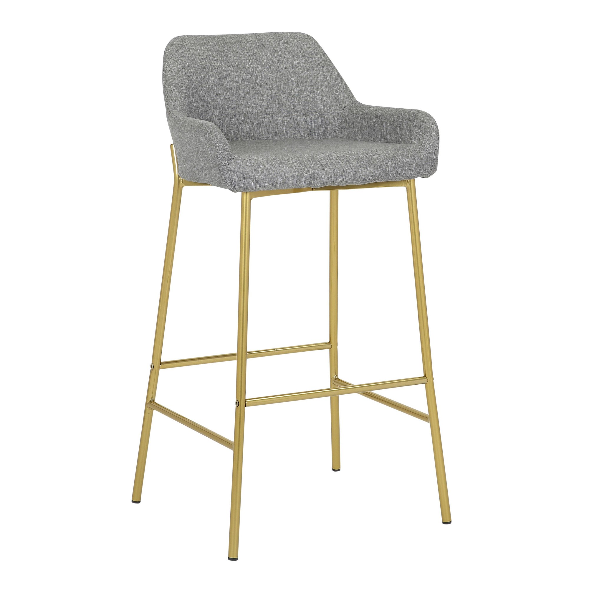 Daniella Fixed-Height Bar Stool – Gold Metal, Grey Fabric – Set of 2