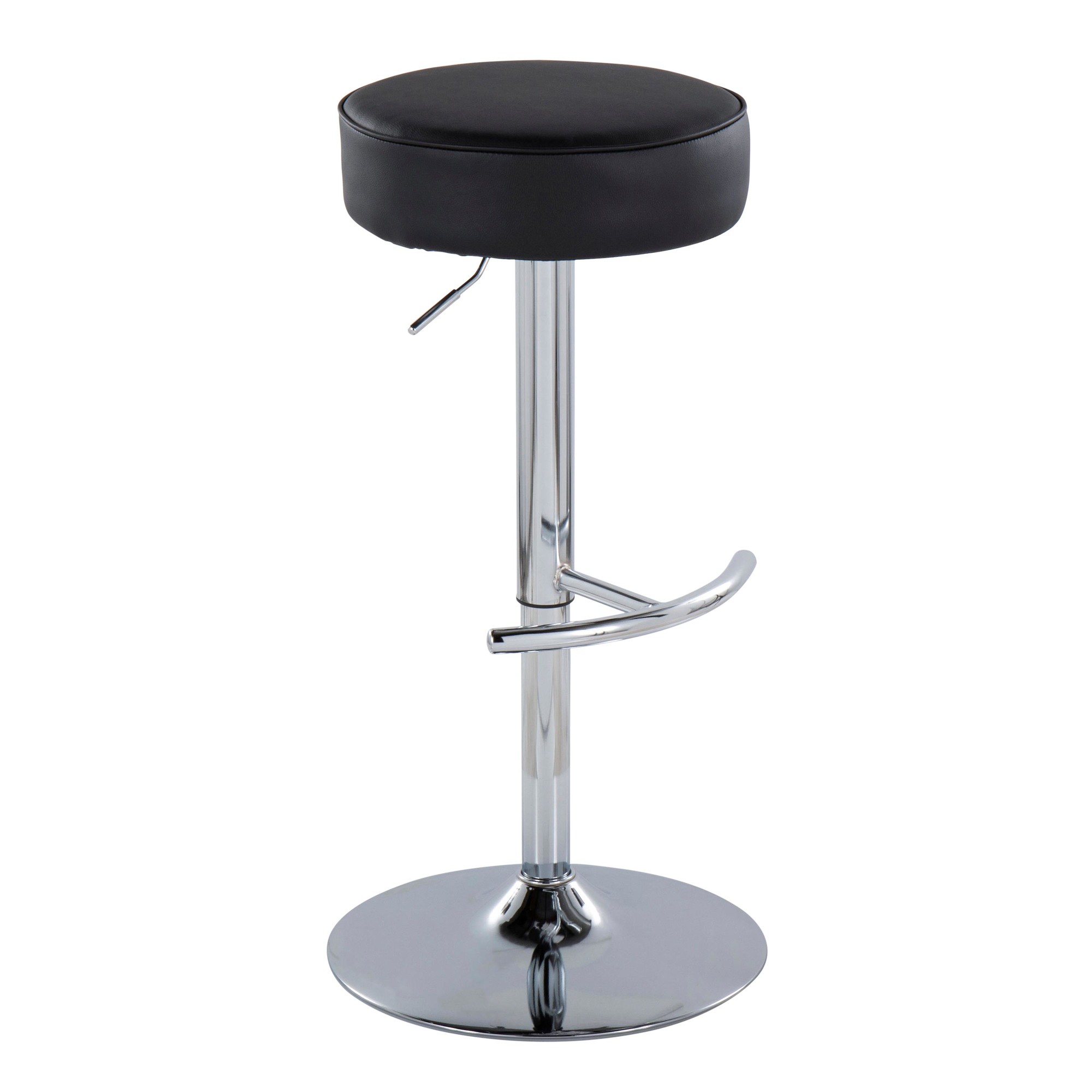 Dot Adjustable Barstool – Chrome Metal, Black PU – Set of 2