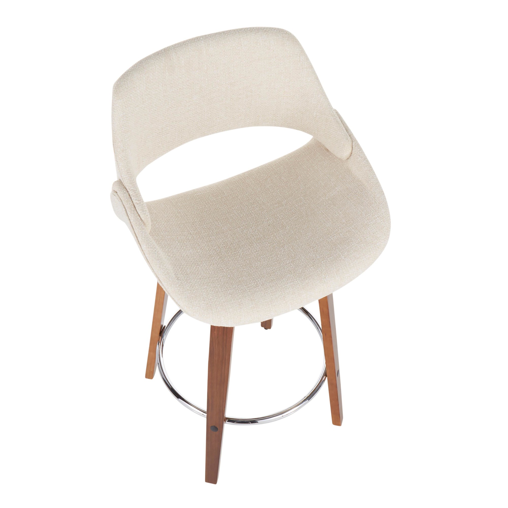 Home / Dining Room / Chairs, Stools, and Benches / Fabrico Counter Stool – Walnut Wood, Cream Fabric, Chrome – Set of 2