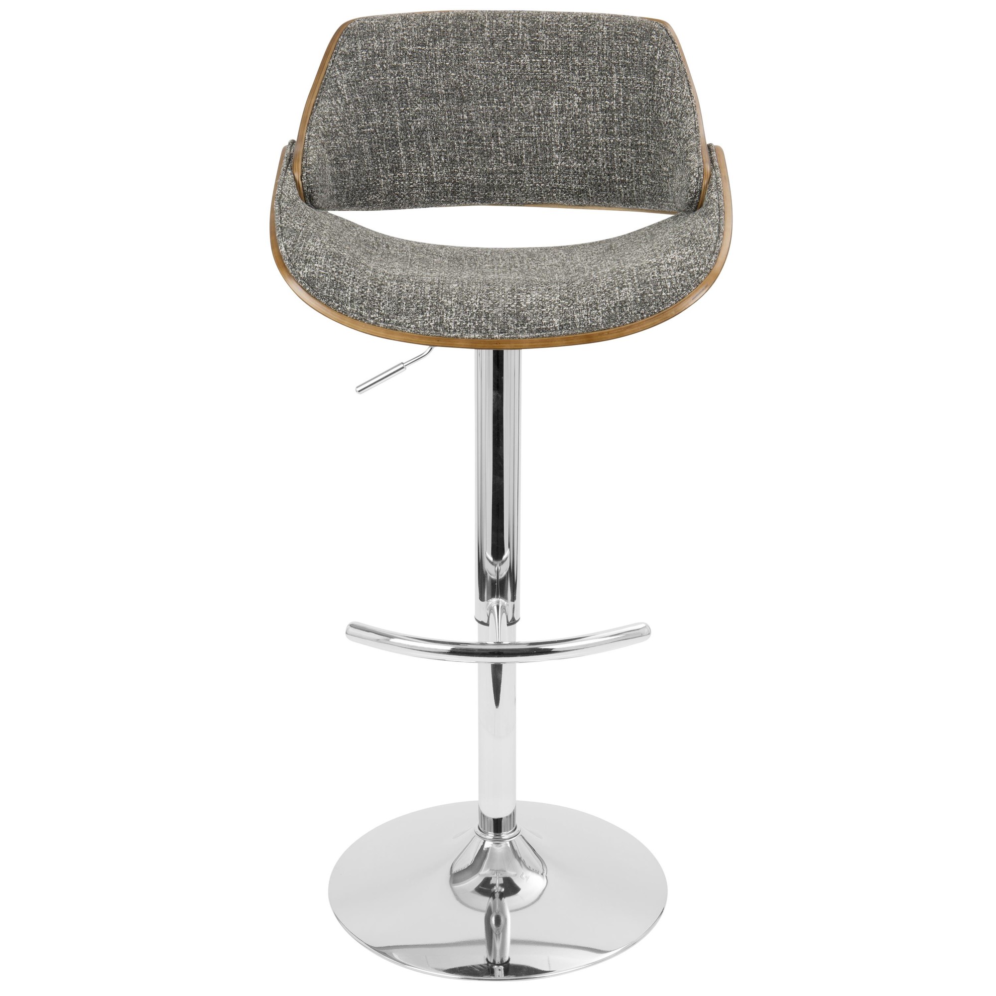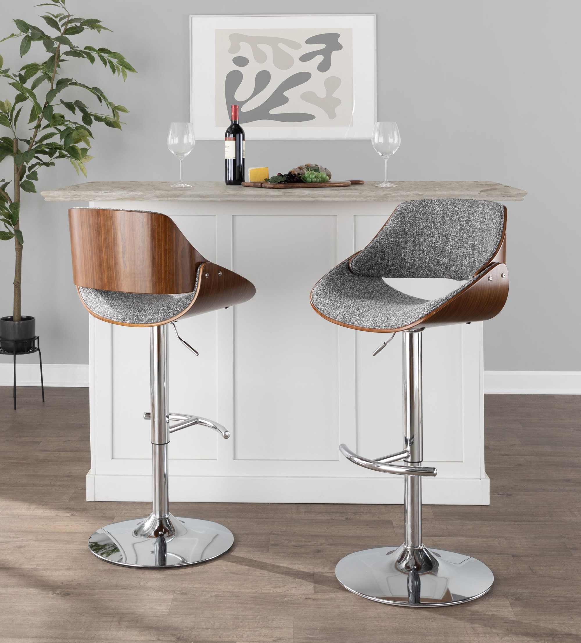 Fabrizzi Adjustable Barstool – Chrome, Walnut Wood, Grey Noise Fabric – Set of 2