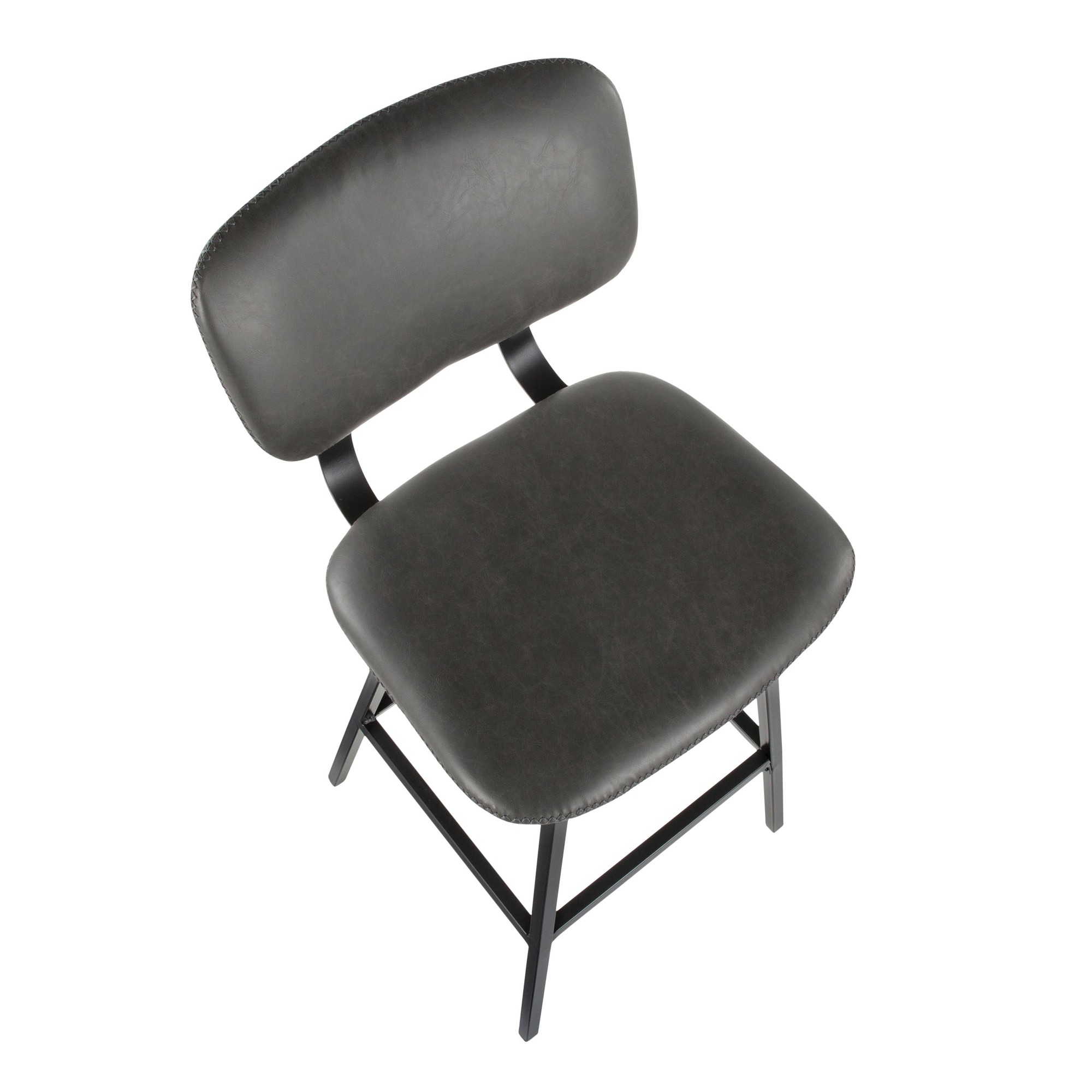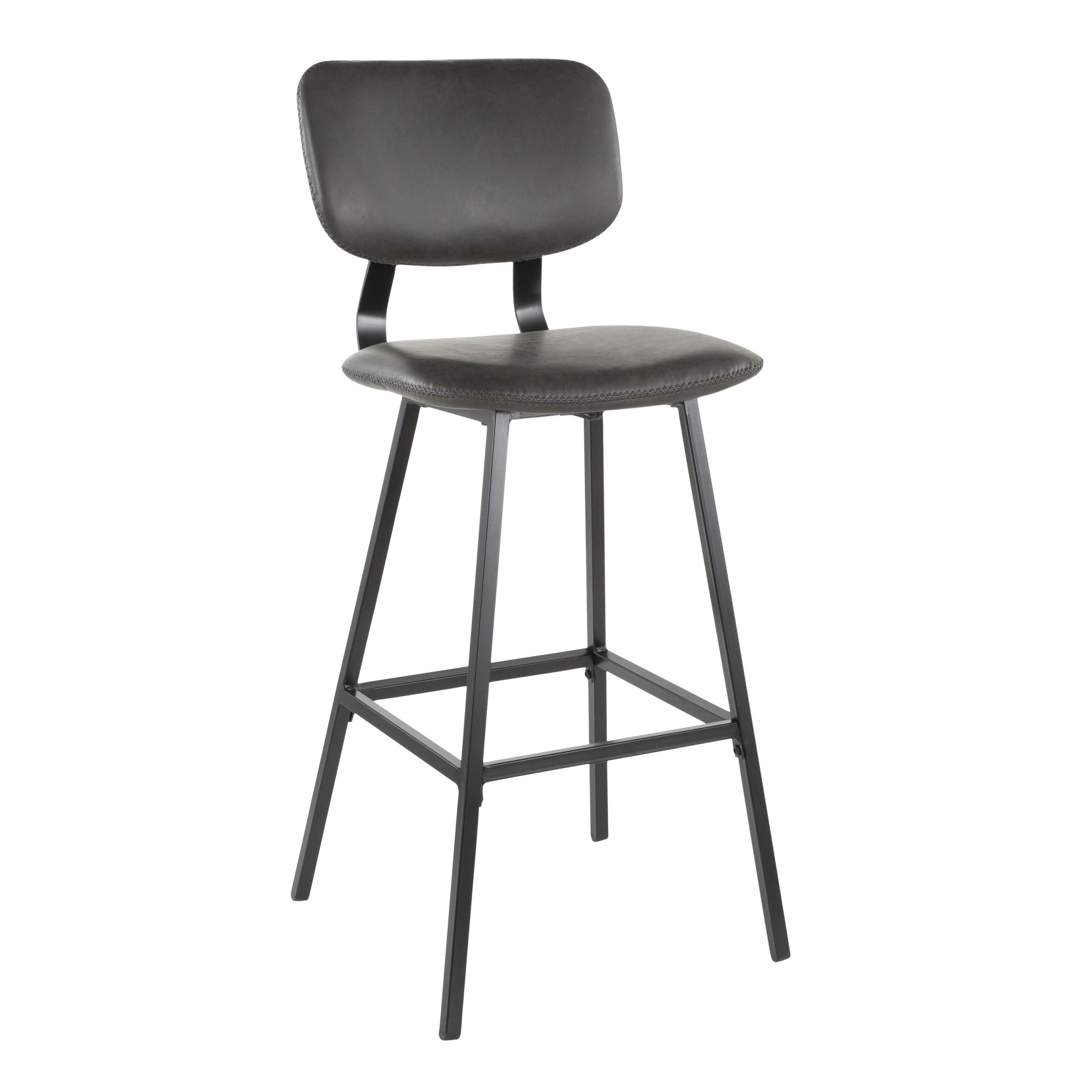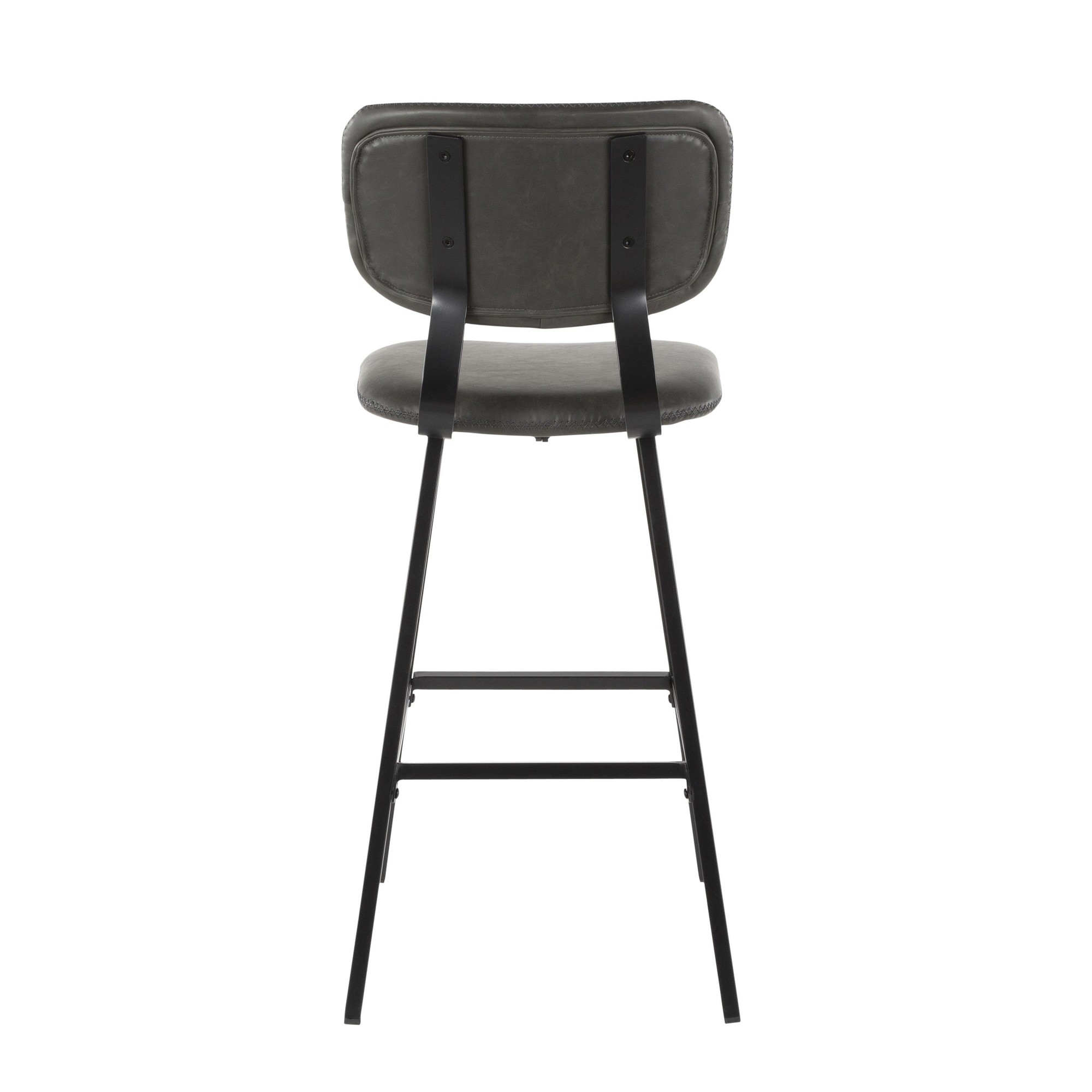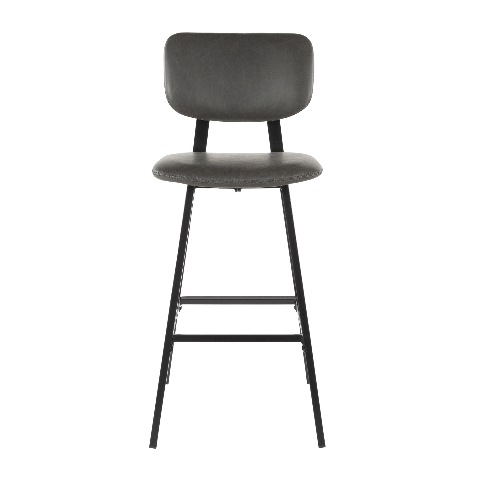 Foundry Barstool – Black Metal, Grey PU, Grey Zig Zag Stitching – Set of 2