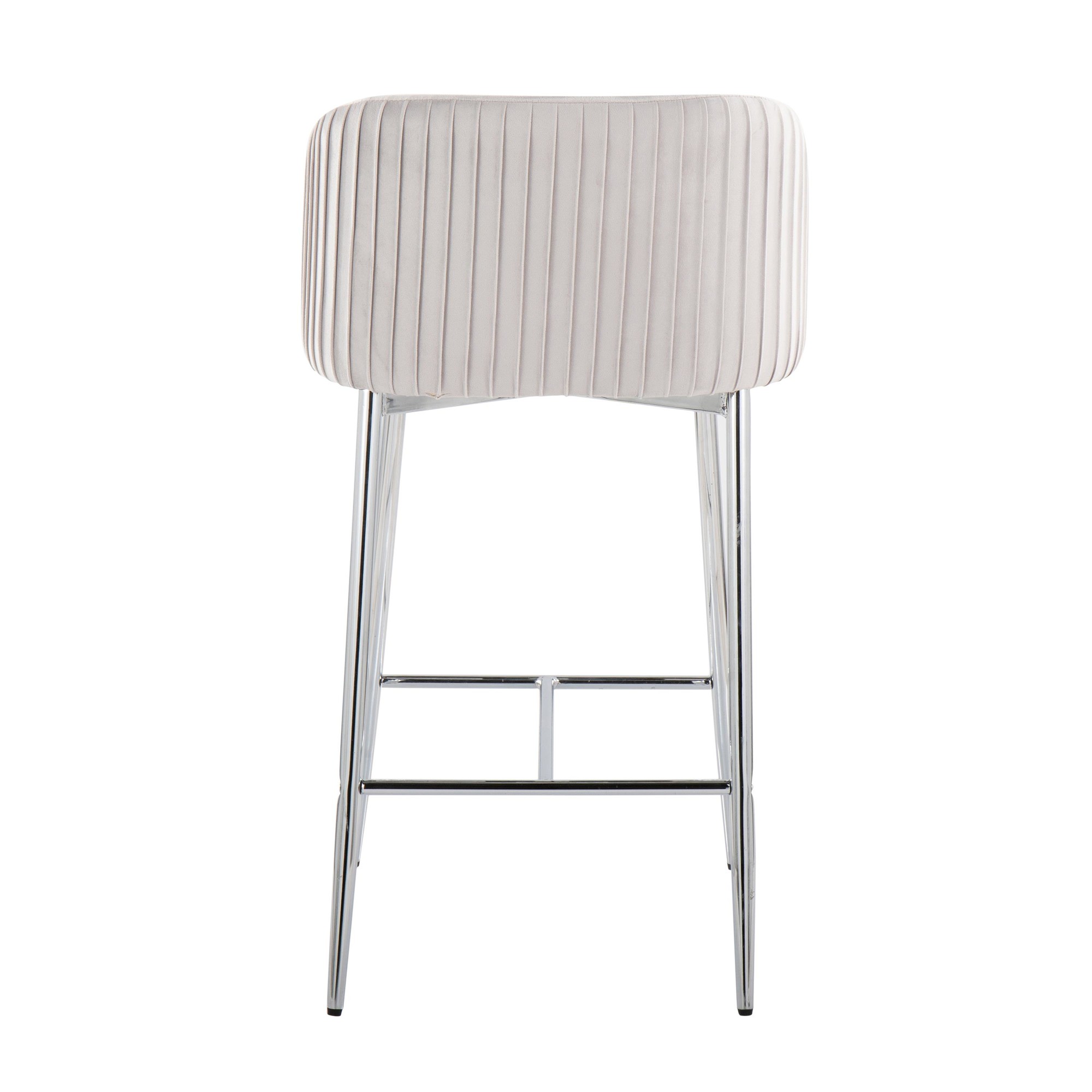 Home / Dining Room / Chairs, Stools, and Benches / Fran Pleated Fixed-Height Counter Stool – Chrome Metal, Silver Velvet – Set of 2