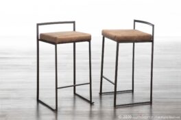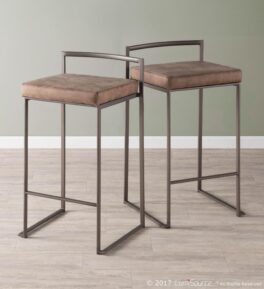 Home / Dining Room / Chairs, Stools, and Benches / Fuji Counter Stool – Antique, Brown Cowboy Fabric – Set of 2