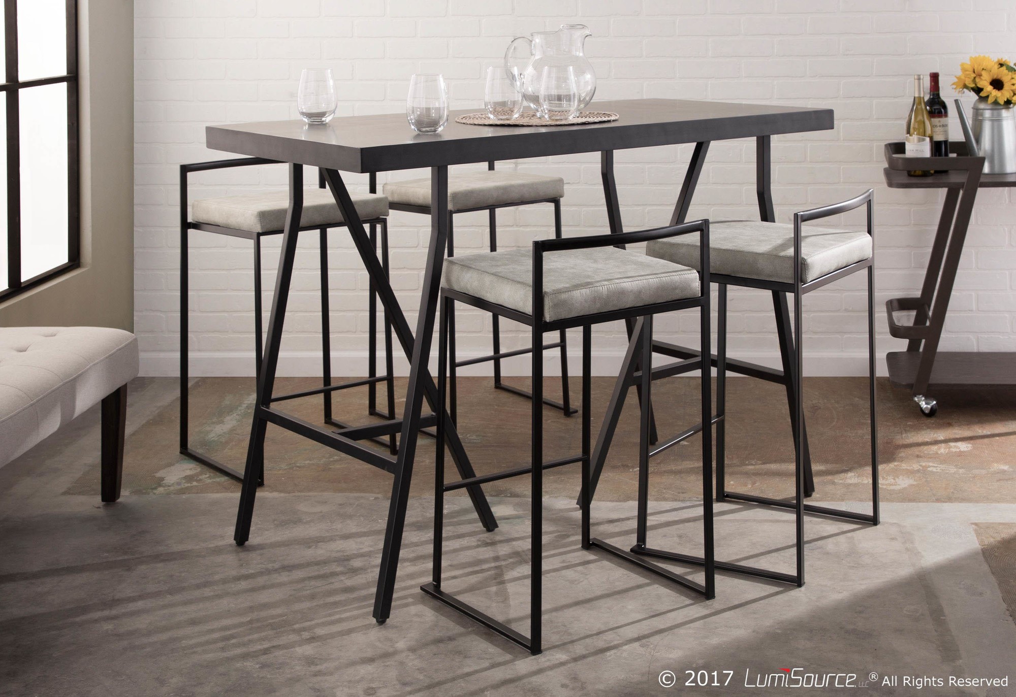 Fuji Counter Stool – Black, Light Grey Cowboy Fabric – Set of 2