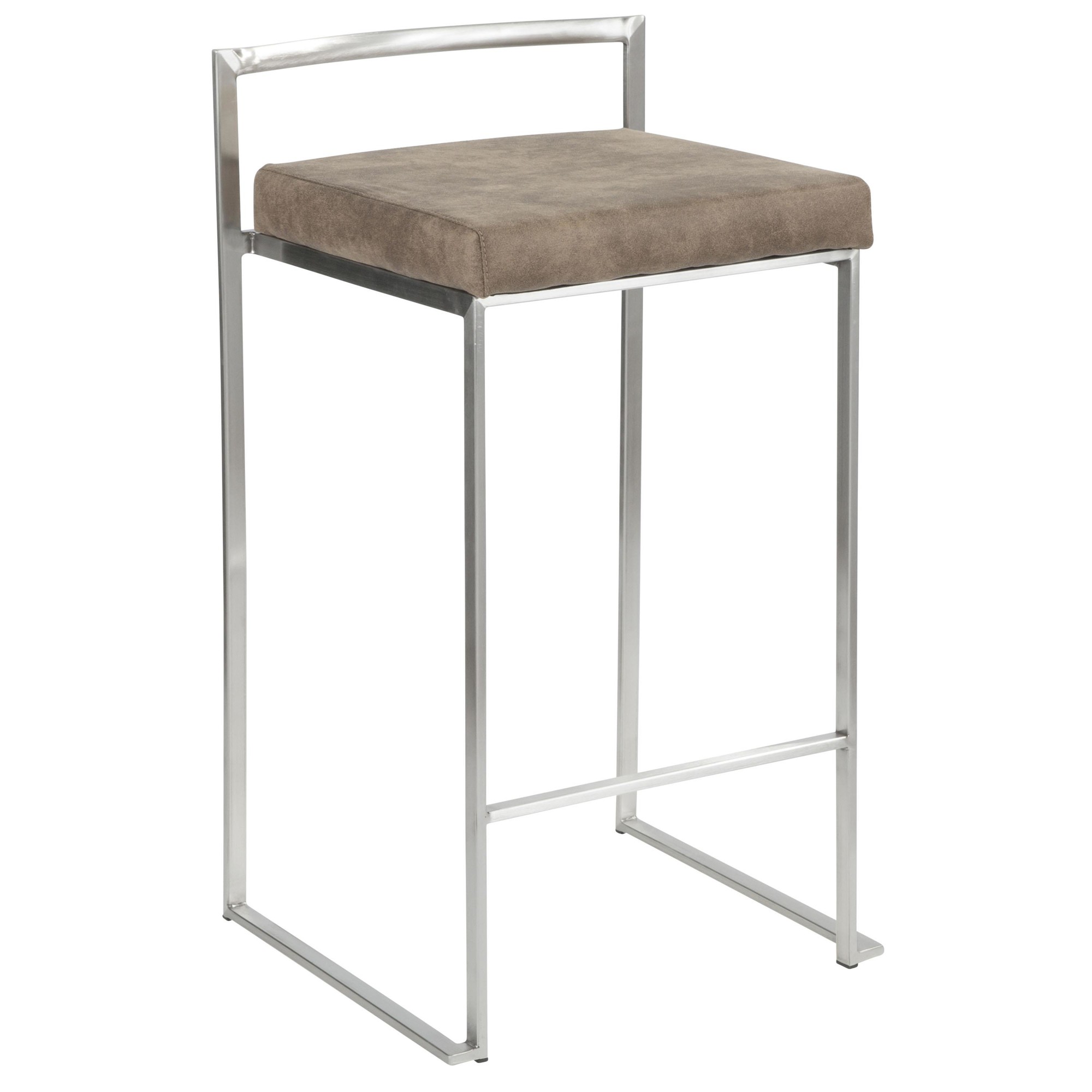 Home / Dining Room / Chairs, Stools, and Benches / Fuji Counter Stool – Stainless Steel, Brown Cowboy Fabric – Set of 2