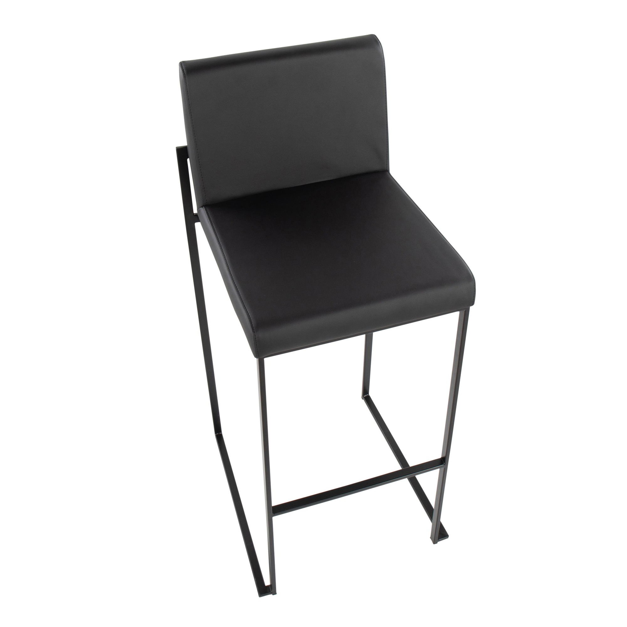 Fuji High Back Counter Stool – Black Steel, Black PU – Set of 2