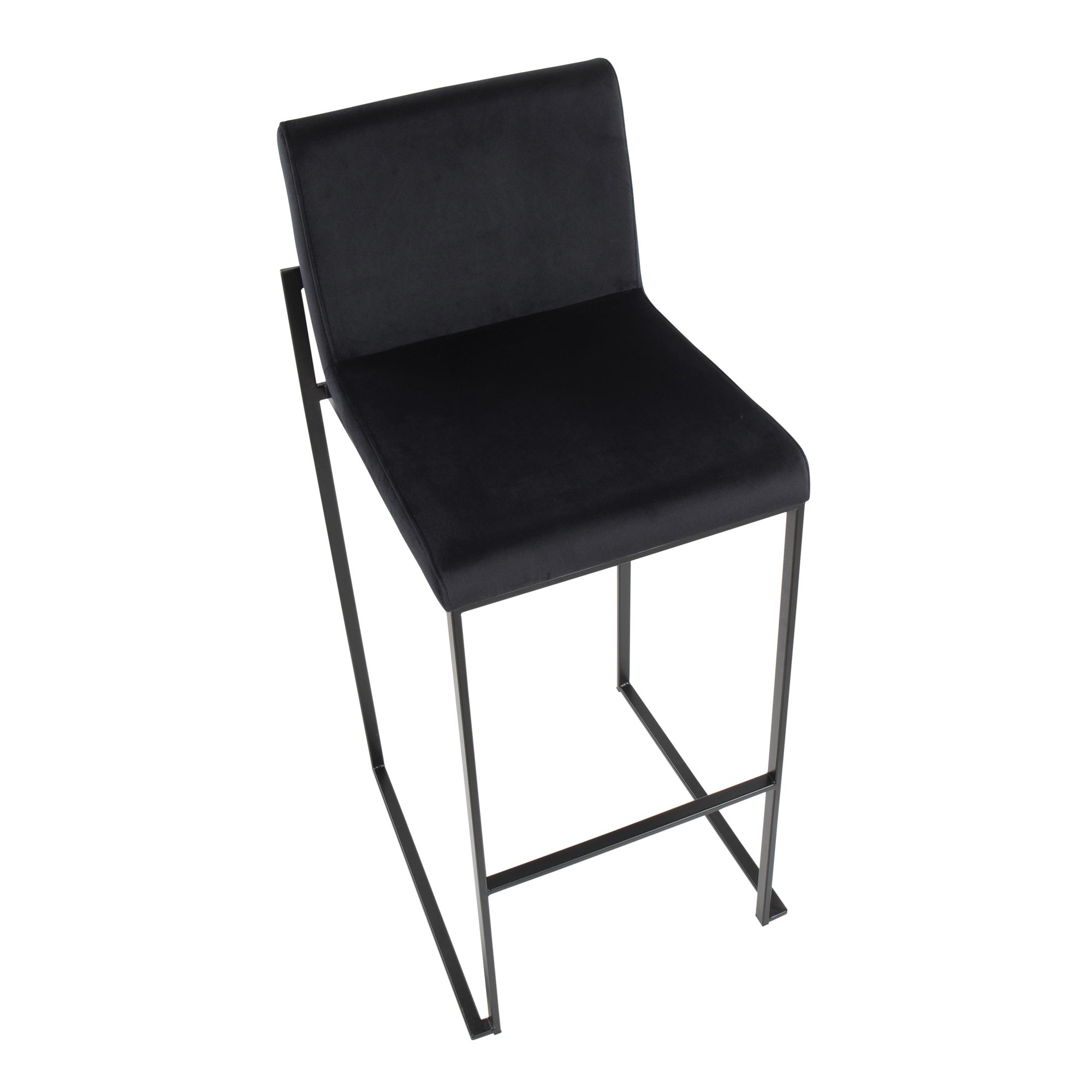 Fuji High Back Counter Stool – Black Steel, Black Velvet – Set of 2