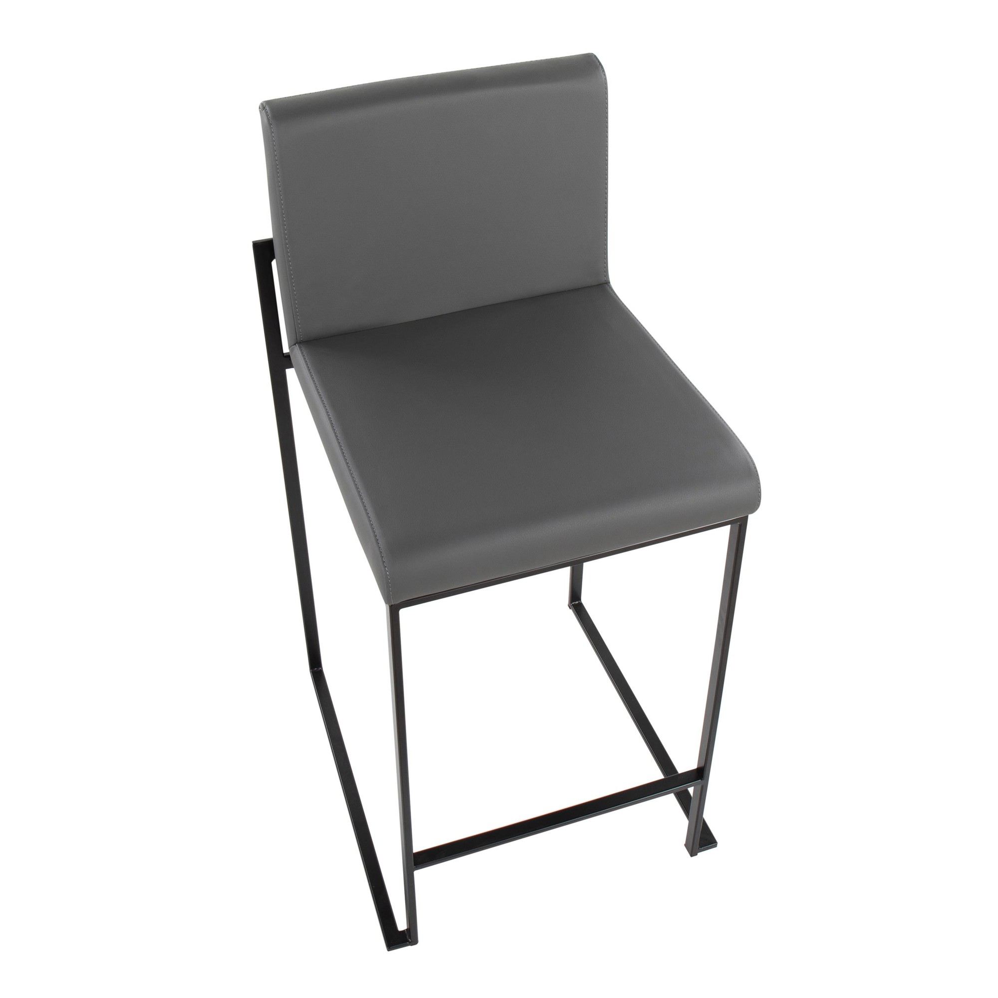 Fuji High Back Counter Stool – Black Steel, Grey PU – Set of 2