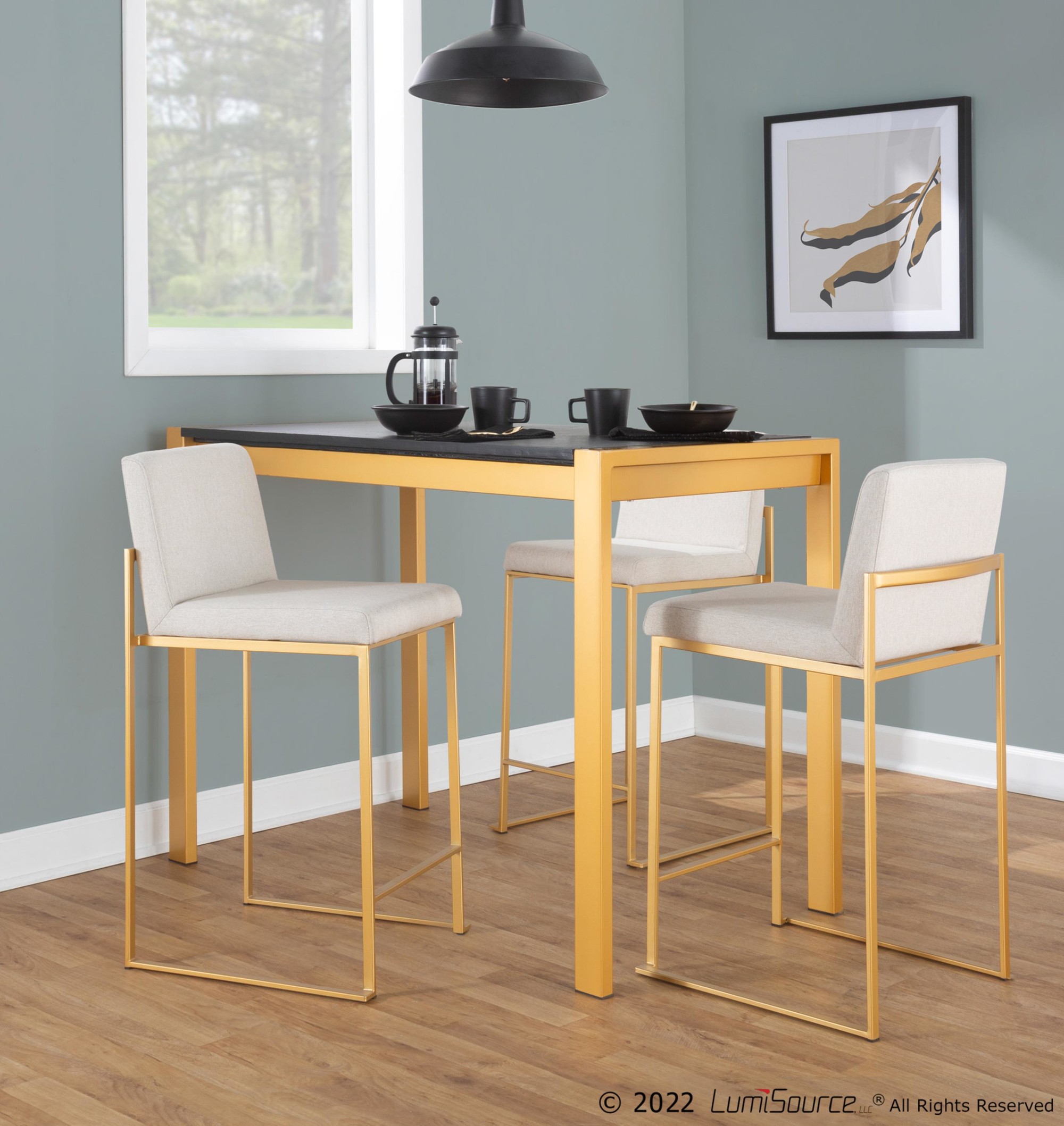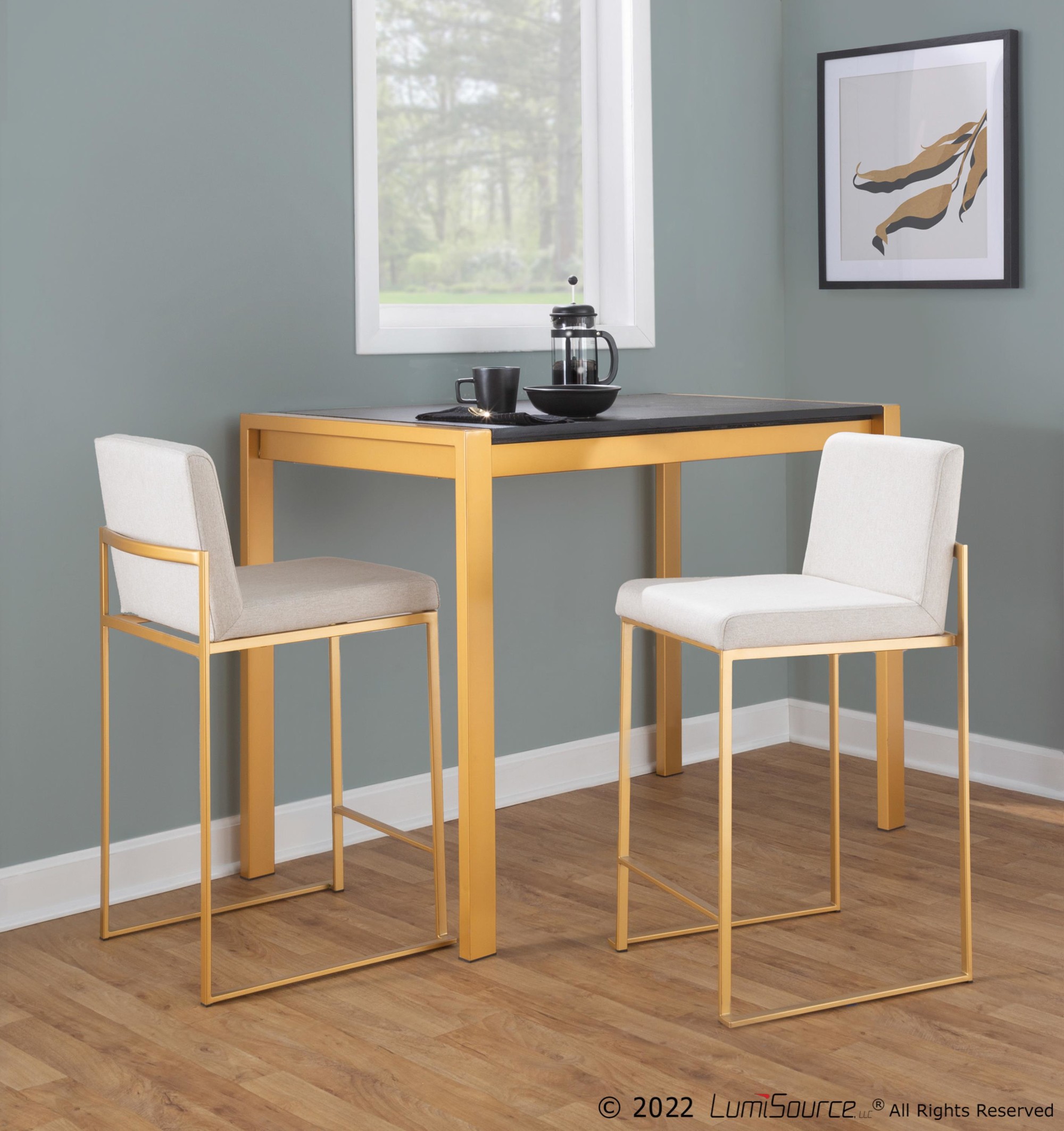 Fuji High Back Counter Stool – Gold Steel, Beige Fabric – Set of 2
