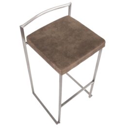 Home / Dining Room / Chairs, Stools, and Benches / Fuji Stacker Barstool – Antique Metal, Brown PU – Set of 2