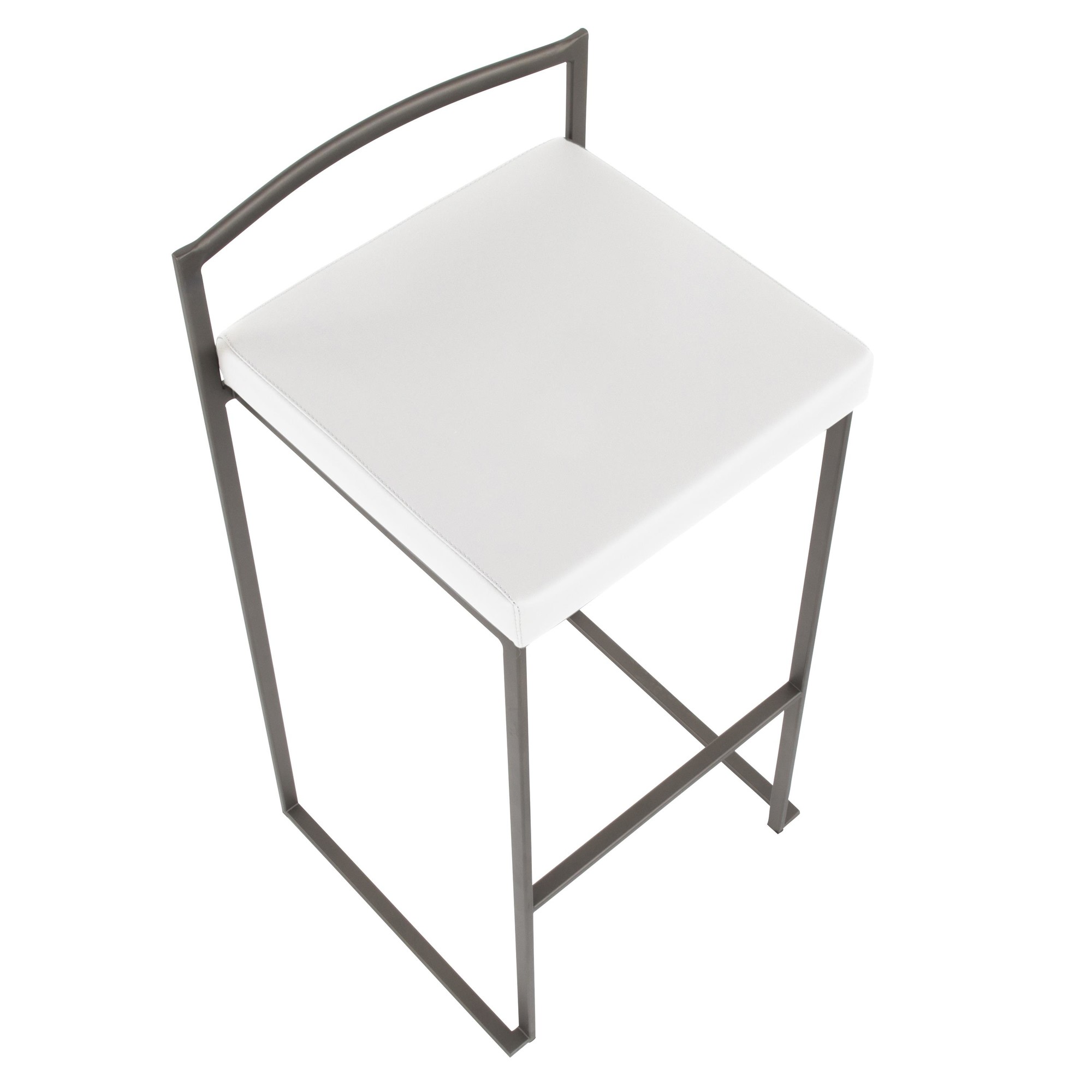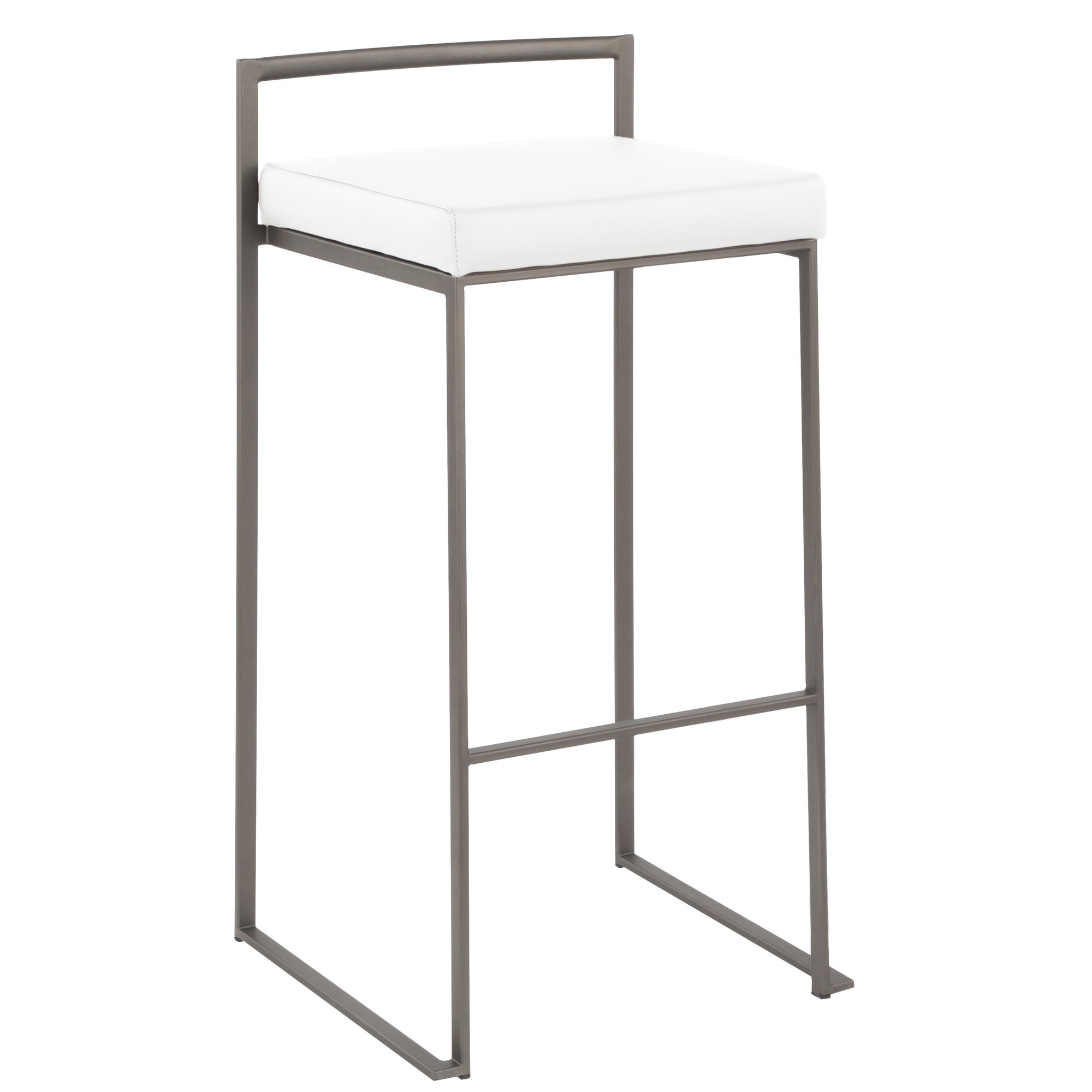 Home / Dining Room / Chairs, Stools, and Benches / Fuji Stacker Barstool – Antique Metal, White PU – Set of 2