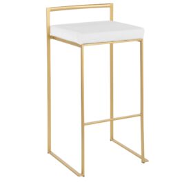 Home / Dining Room / Chairs, Stools, and Benches / Fuji Stacker Barstool – Gold Metal, White Velvet – Set of 2