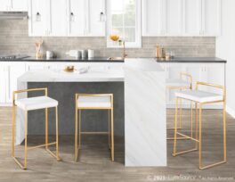 Fuji Stacker Barstool – Gold Metal, White Velvet – Set of 2