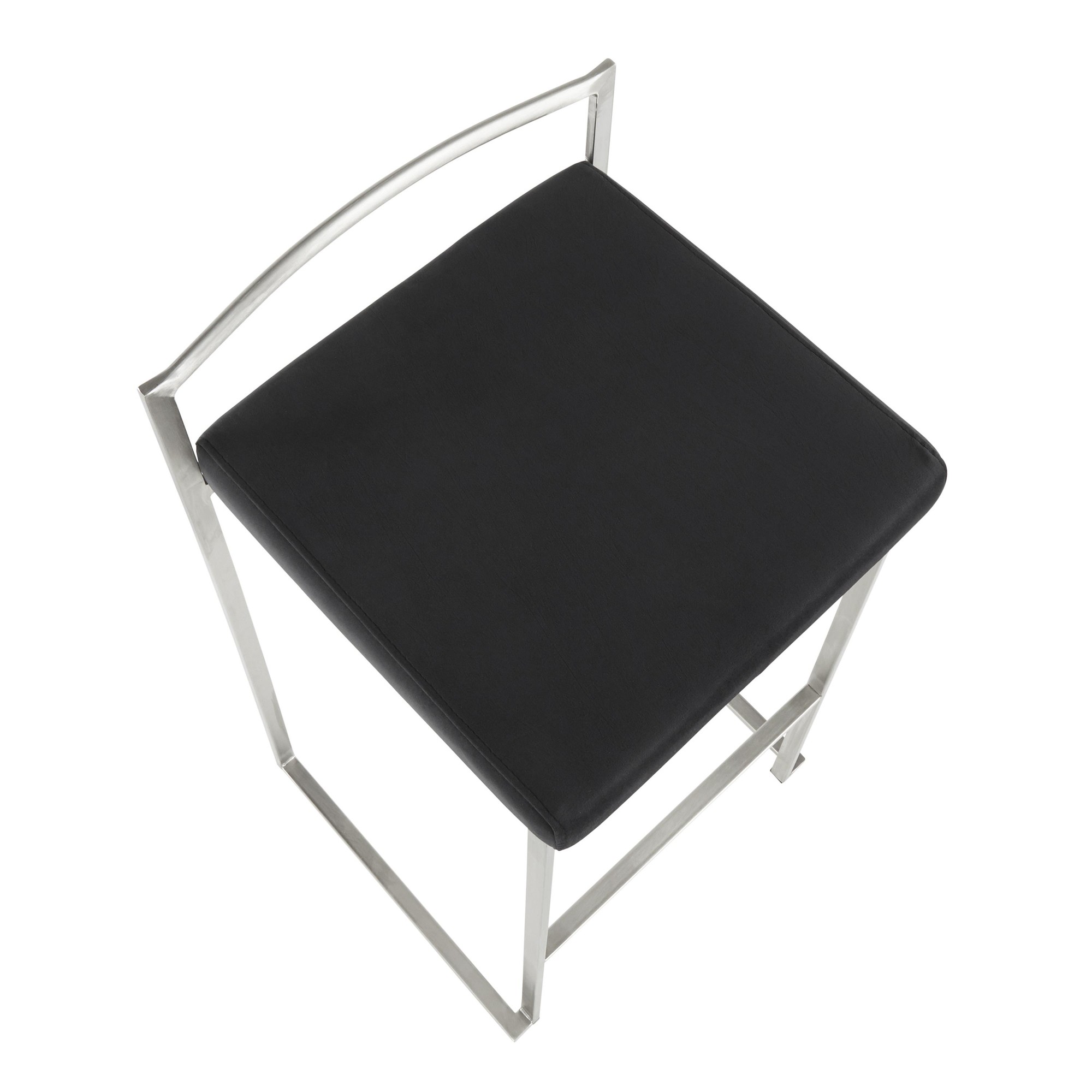 Fuji Stacker Counter Stool – Brushed Stainless Steel, Black Velvet – Set of 2