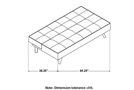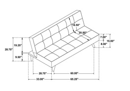 Have a seat on this modern streamlined couch in a neutral color. Click to move the back down for a convenient space to lay down flat and sleep. While we don’t recommend this for your every night bed, it will do for overnight bed guests. Easy to set up, just twist to screw in the legs. We offer setup and delivery to you in Chicagoland. Armless profile and faux leather upholstery. Biscuit tufted upholstery and piping with splay tapered wooden legs. Attached cushions with sinuous spring decking.