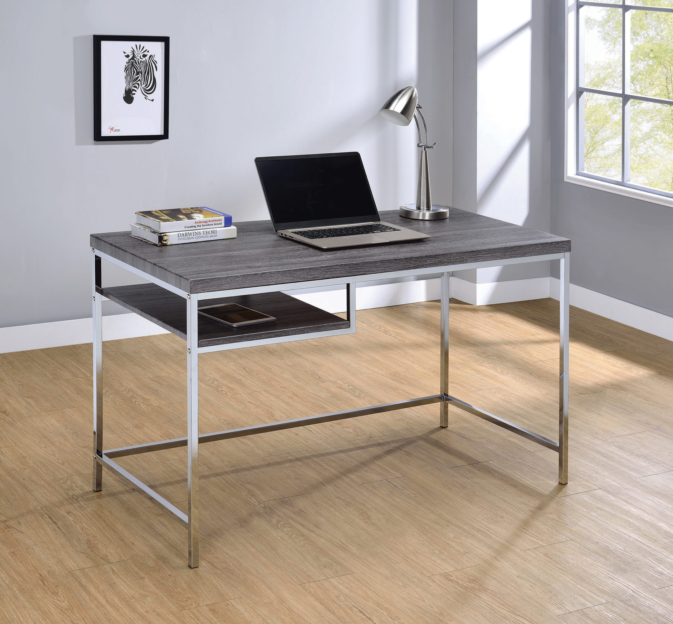 Kravitz Rectangular Writing Desk Weathered Grey And Chrome