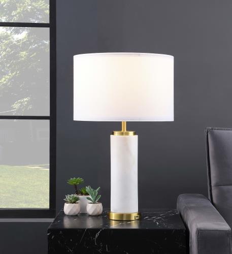 Lucius Drum Shade Bedside Table Lamp – White and Gold