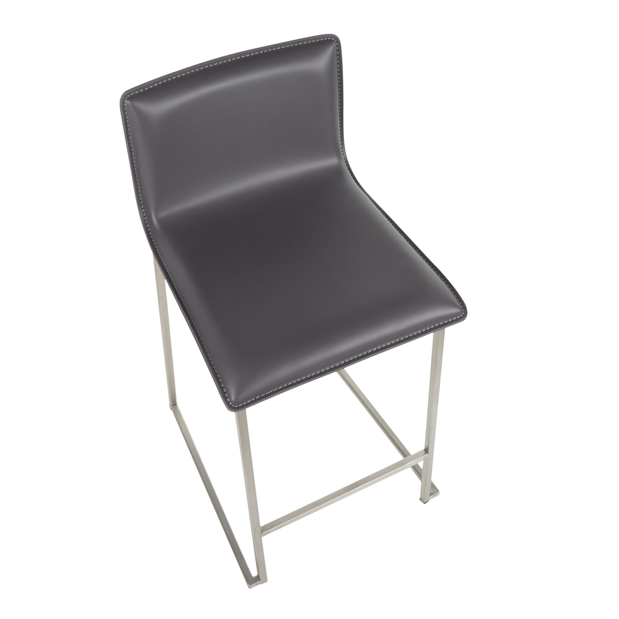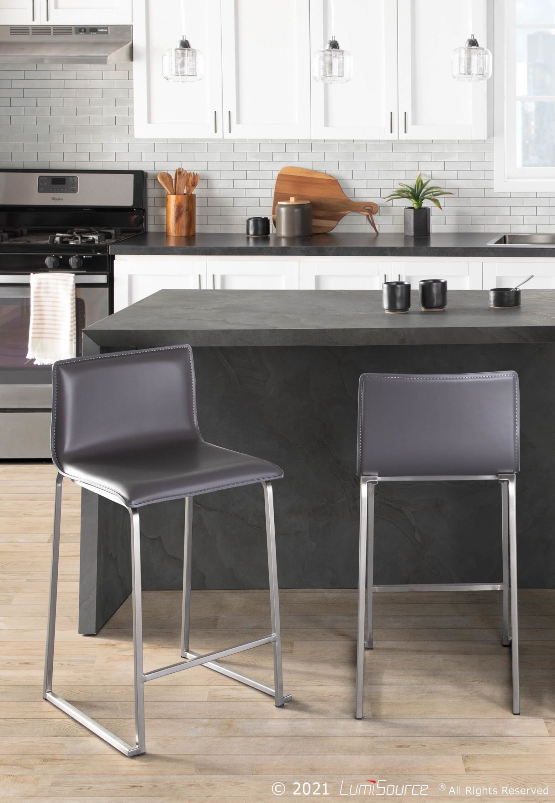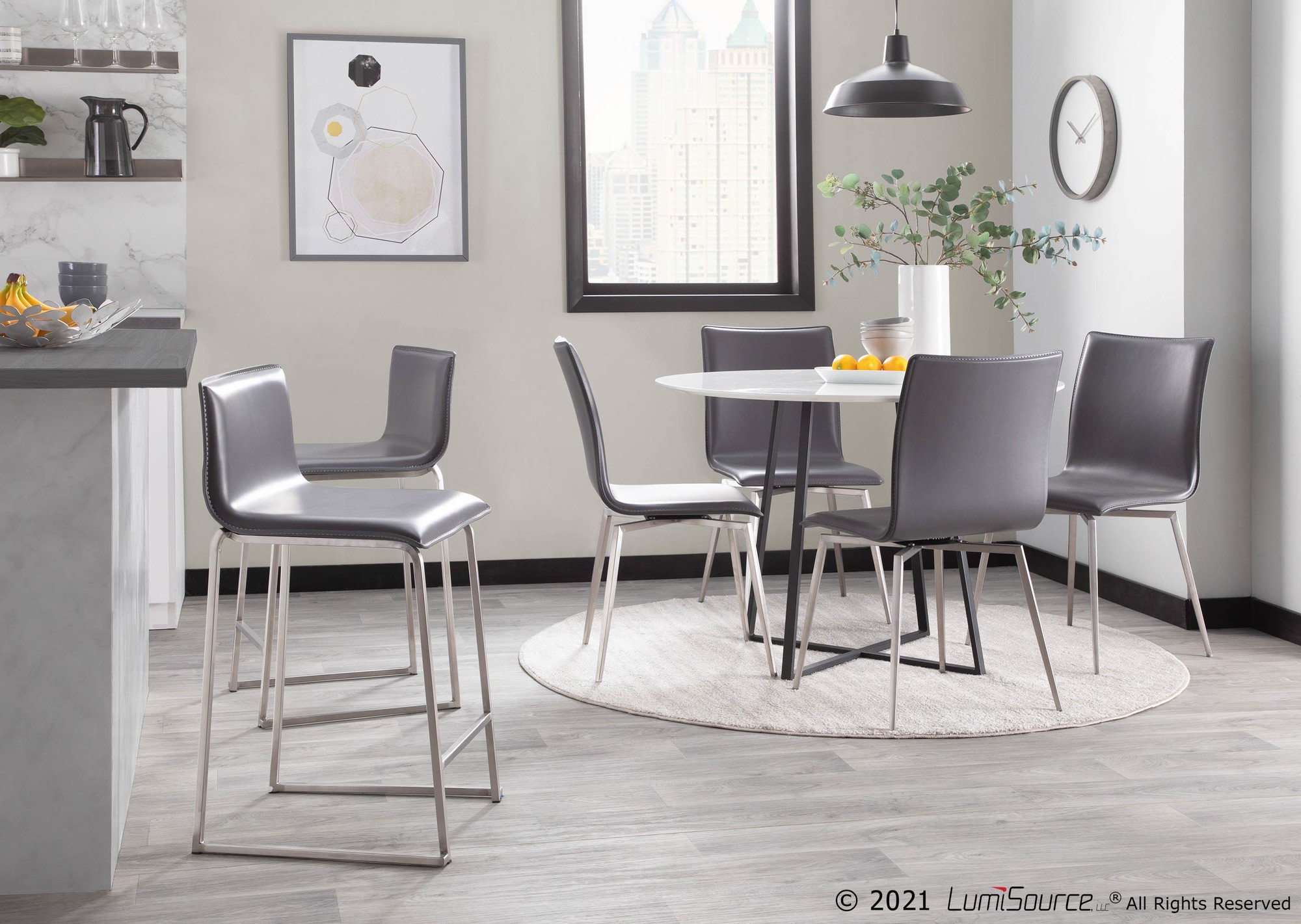 Mara Counter Stool – Stainless Steel, Grey Pu – Set of 2