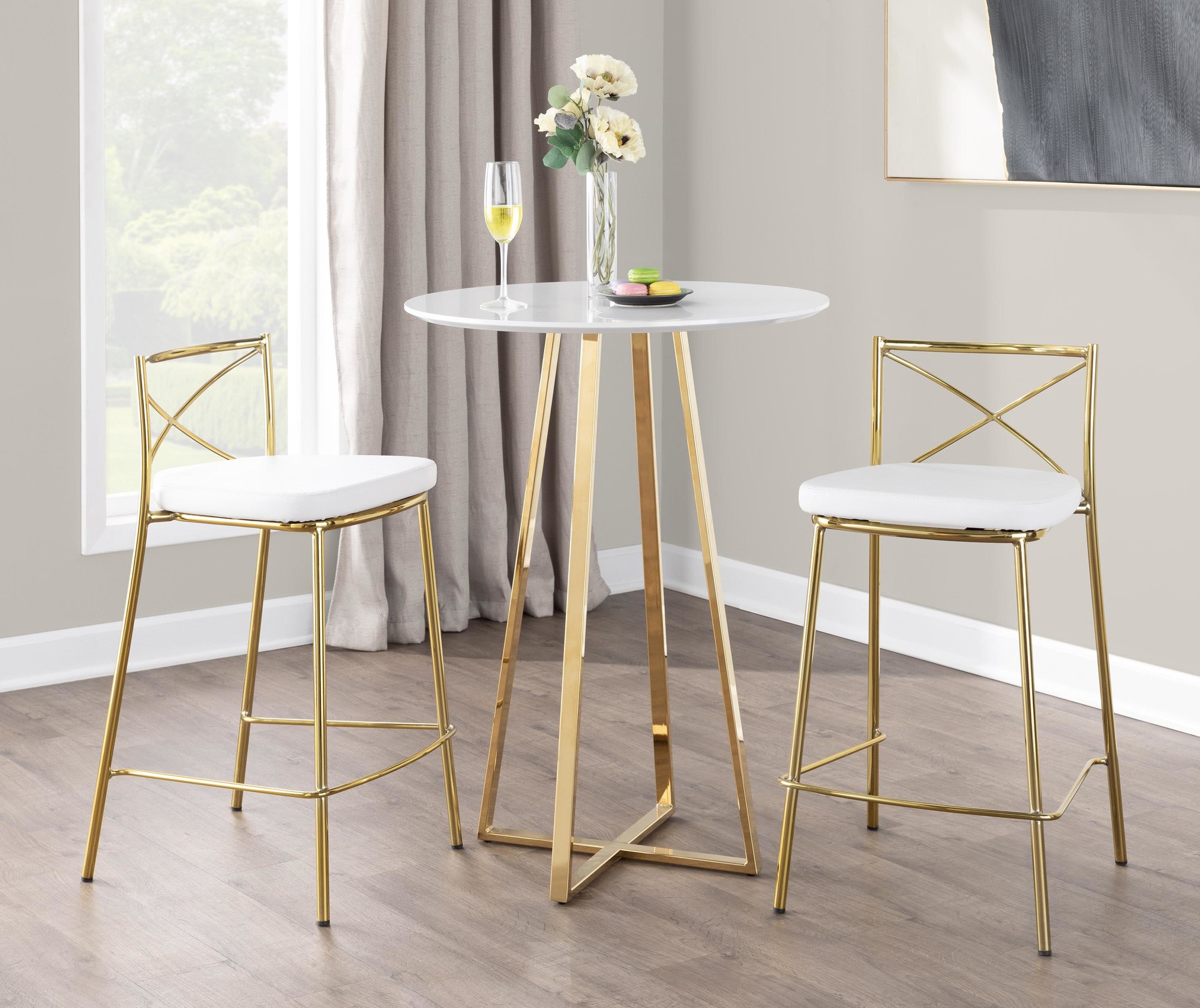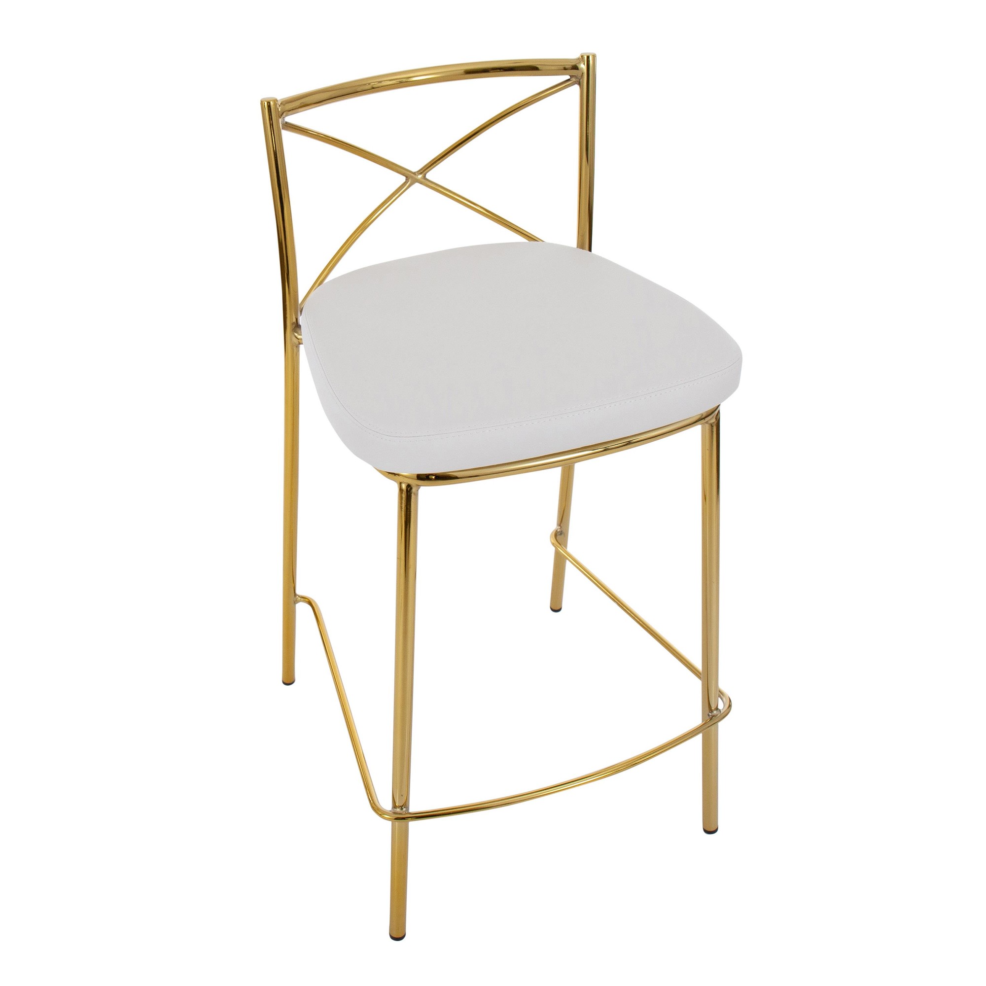 Modern Charlotte Counter Stool – Gold Metal, White PU – Set of 2