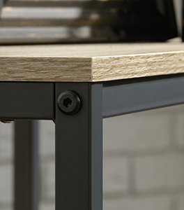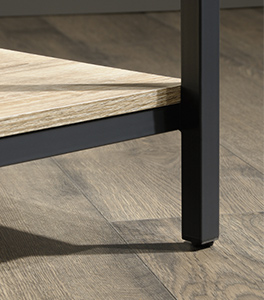 Black Metal frame with feet screw together. Finished on all sides.