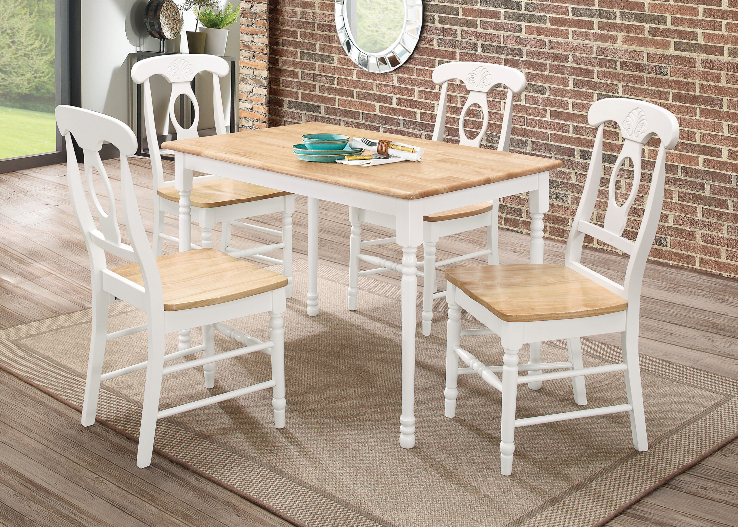 This rustic dining table looks great in a cozy breakfast nook or dining area. Two-tone finish makes this table go great with two-tone dining chairs (not included). Brown solid wood table top is spacious enough for a large breakfast or four-course family dinner. Four white table legs have clean lines and offer durability. Table secretly doubles as a poker table.
