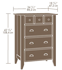 34 3/4″ W x 18 5/8″ D x 42 5/8″ H