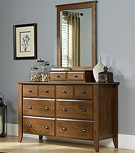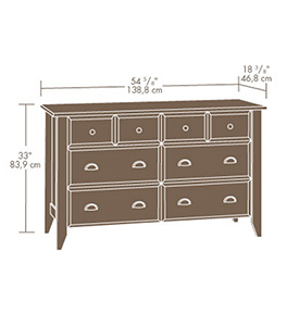 Dresser |Oiled Oak finish Drawers with metal runners and safety stops feature patented T-lock assembly system.