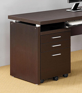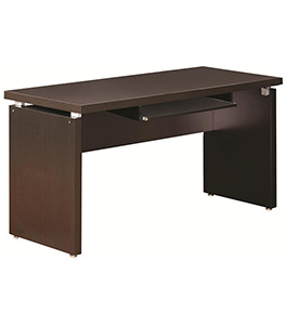 A pullout keyboard drawer adds computer ready convenience to the left side of the desk. In cappuccino finish with silver accent hardware, this desk has room and adds a touch of modern style. When you are ready to get to work. Great for a larger workspace.