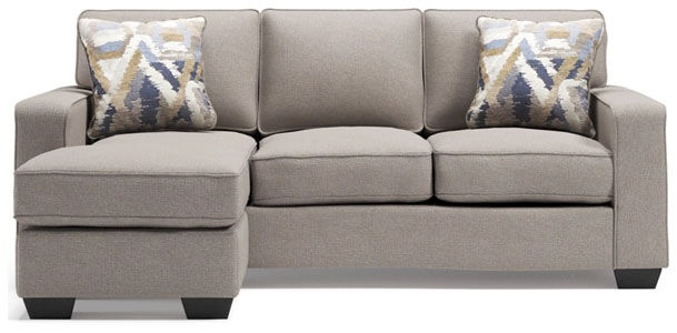 Sit down and relax on this nice L shaped sofa chaise in stone color.