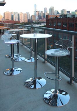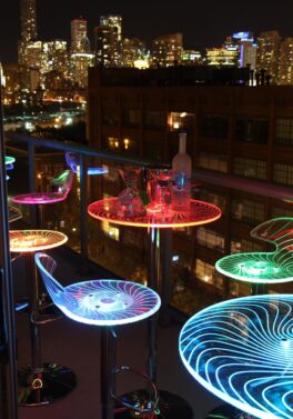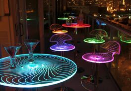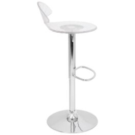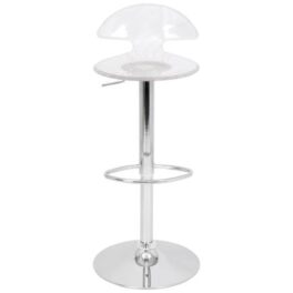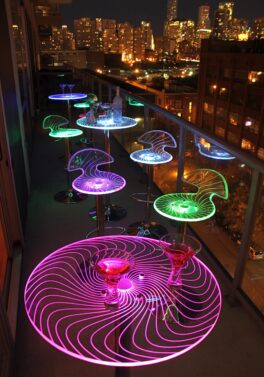 Okay, this is cool. Light up the night with the Spyra Bar Stool. The Spyra features a clear PC seat with visible etching when both on and off. Once the 6-8 hour battery is charged you get multi-colored LEDs hidden in the bar stool, are turned on and start to phase between red, blue and green, the seat glows for a fantastic look! The Spyra Bar Stool includes a power adapter; on a full charge it can last up to 8 hours.
