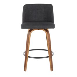 Home / Dining Room / Chairs, Stools, and Benches / Toriano Counter Stool – Walnut Wood, Charcoal Fabric, Black Metal – Set of 2